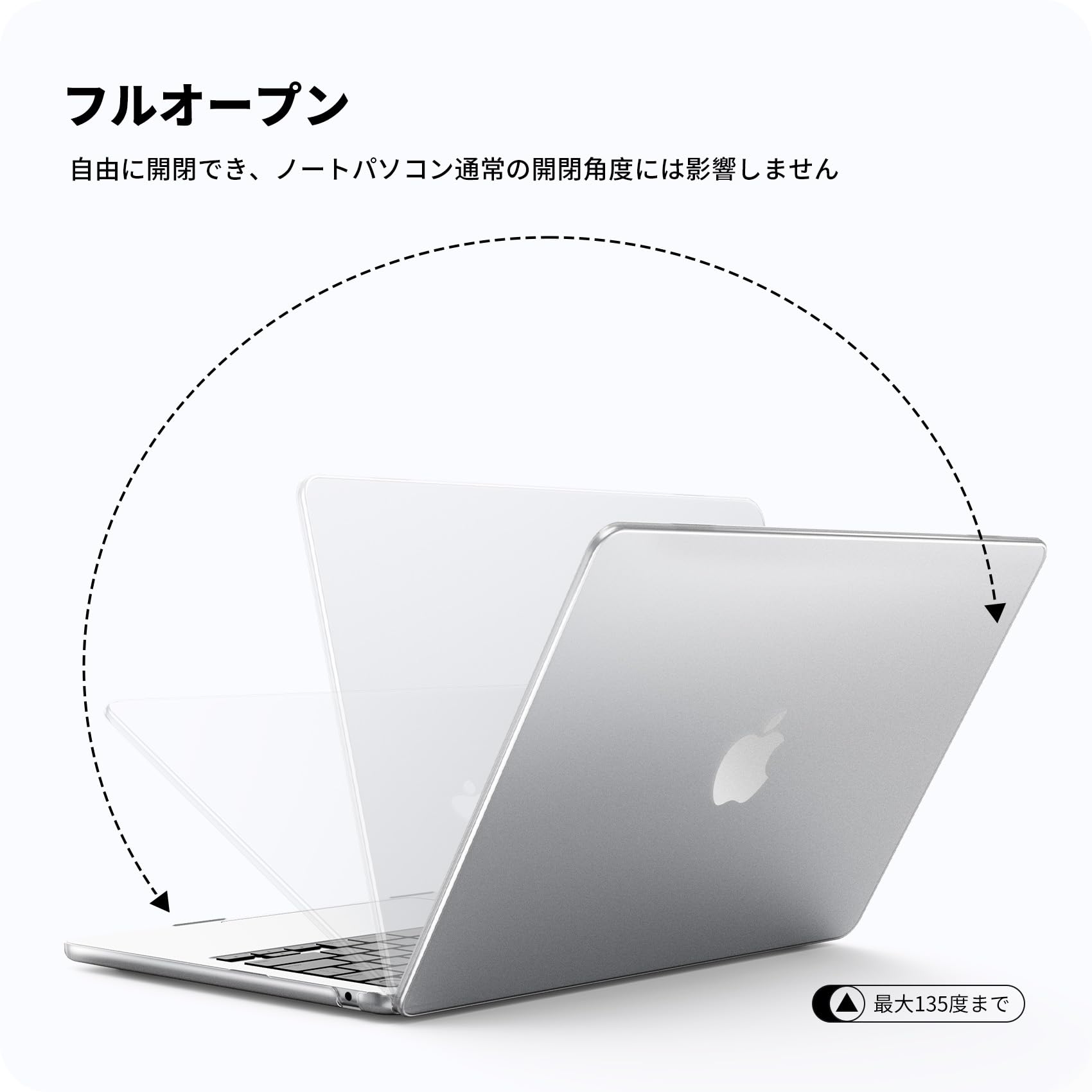 ケースを装着してもMacBook の開閉に影響しません。