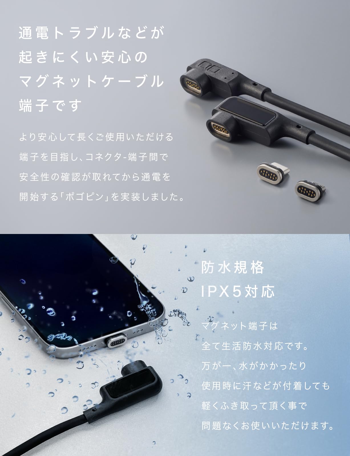 ■ 【カチッとくっつくデータ転送対応マグネット充電ケーブル】iPhone 17 など、スマートフォン や USB type-C ポート搭載機器に ケーブル を近づければ磁石でカチッと吸着して充電。