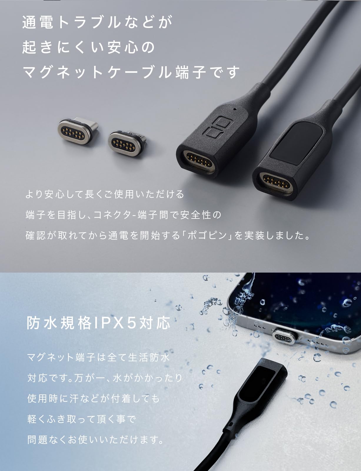 ■ 【徹底的にこだわったCIOならではの安全性】端子とコネクタが分離しているために発生しやすい通電トラブルに対応するため、マグネットケーブルにポゴピンを実装しています。