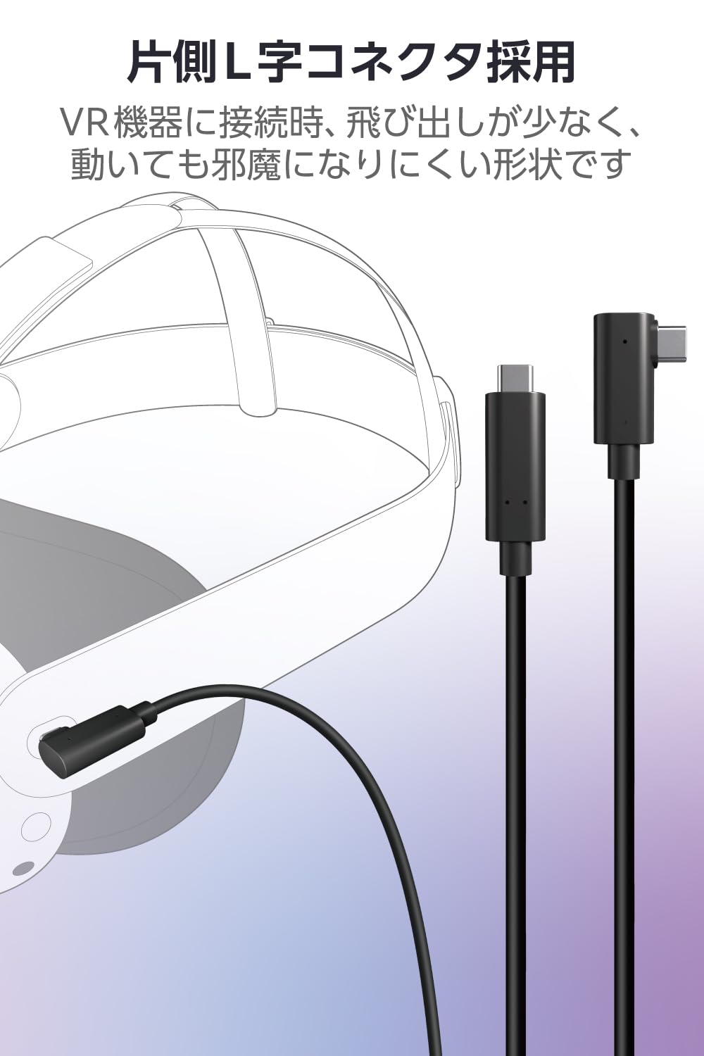 VRヘッドセットに接続の際はもちろん、収納時も場所を取りません。
