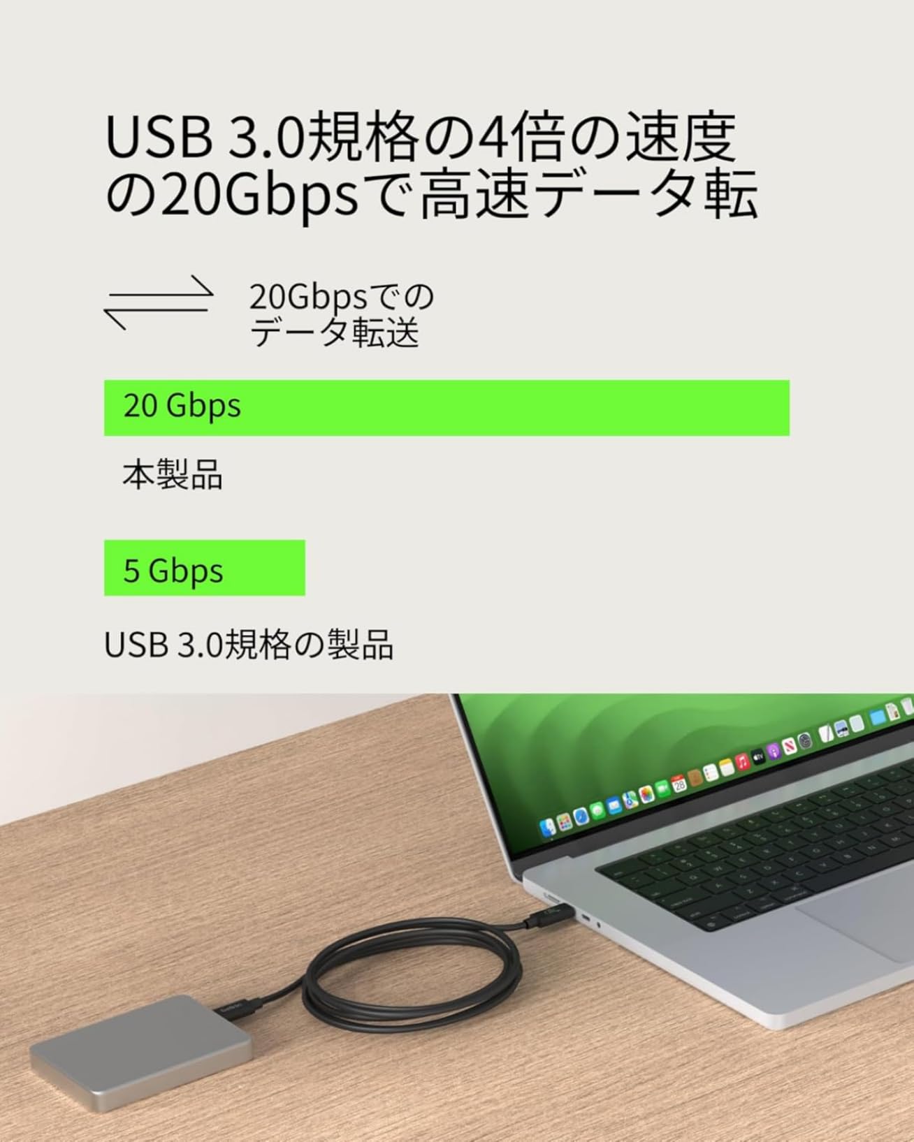 ■ 【最大20Gbpsの超高速データ転送】USB4規格に準拠し、USB3.0の4倍にあたる20Gbpsの高速データ転送を実現。