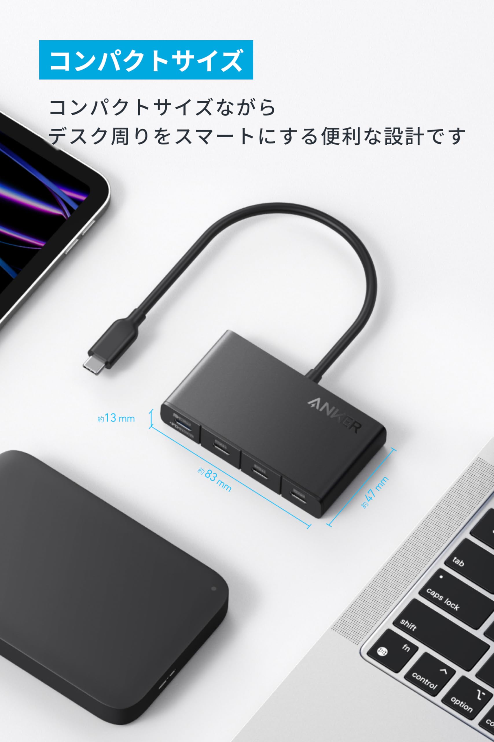 ■ 4つのポートを1つに: 4K (60Hz) 対応・USB PD 100W出力対応 USB-C ポート1つ、高速データ転送用USB-Cポート3つへの接続がこれ一台で可能になりました。