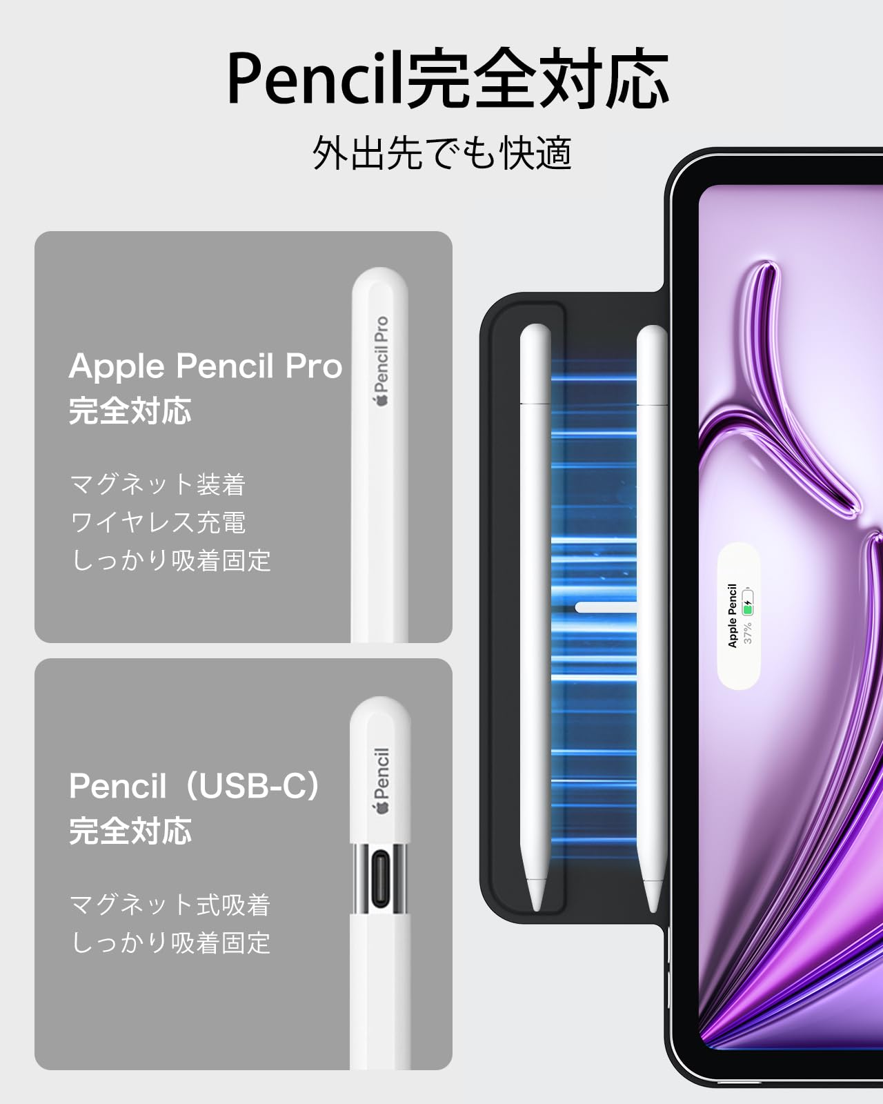 ■ 【Pencil Pro&Pencil (USB-C)対応】: Pencil Proへ完全対応かつ、磁気充電用の側面の溝と、Pencilをしっかりと固定するマグネットクラスプを備えています。