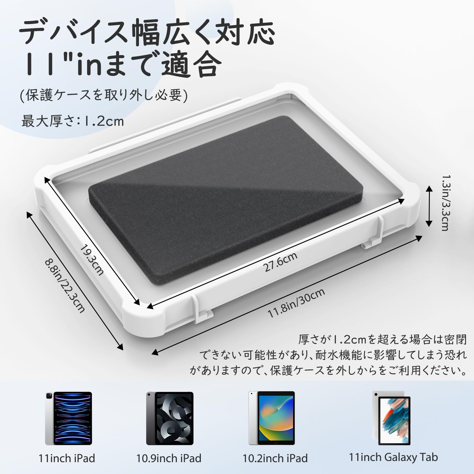 MoKo タブレット防水ケース お風呂 iPad お風呂 ケース タブレット/スマホ兼用 厚さ12mm/11inまでに対応 壁掛けホルダー 360°回転 防霧 貼り付けタイプ タッチパネル操作可能 浴室 洗面所 トイレ キッチン iPad 11(A16)/10世代/mini7/mini6/Air11/Air5/4 10.9/iPad9/8/7世代 10.2などに対応 White