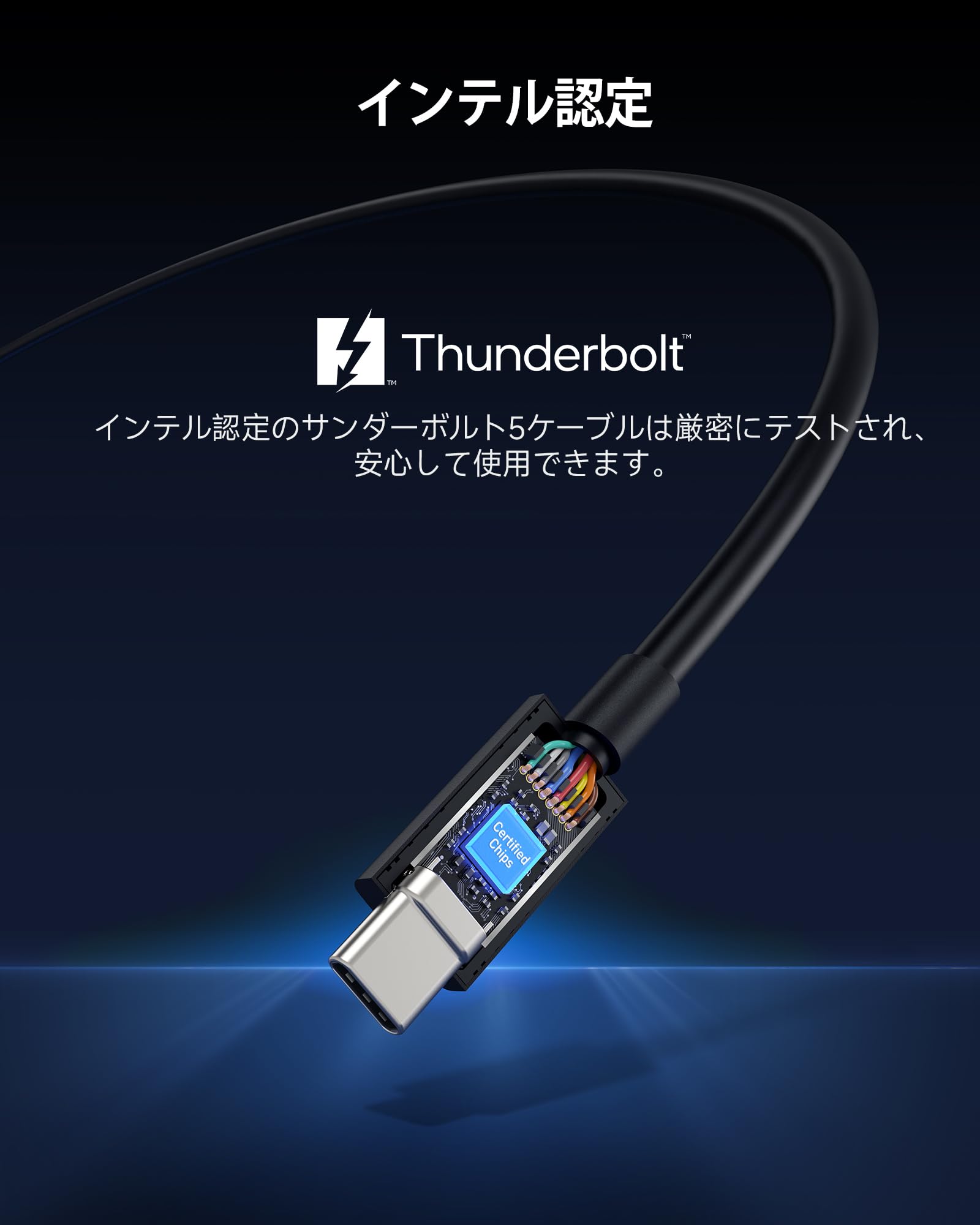 ■ 【堅牢性と信頼性】 品質に細心の注意を払って作られたこのThunderbolt 5ケーブルは、広範なケーブルテストと品質監査を含むIntelのThunderbolt認定基準を満たしています。