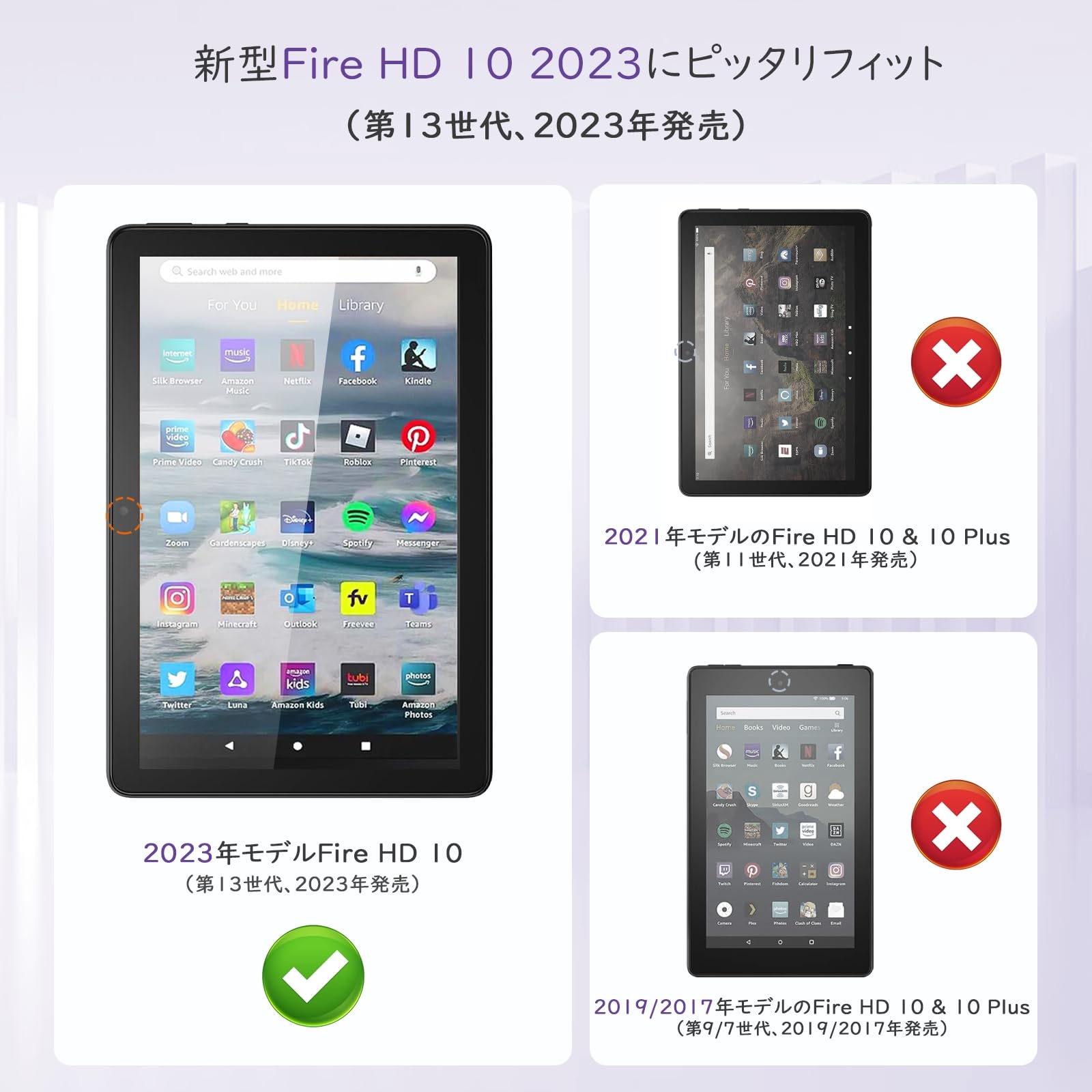 ご注意:Fire HD 10 第11世代 & Fire HD 10 Plus 第11世代 & 他の機種に対応できませんので、ご購入前に必ずお手元のタブレットの機種を予めご確認ください。