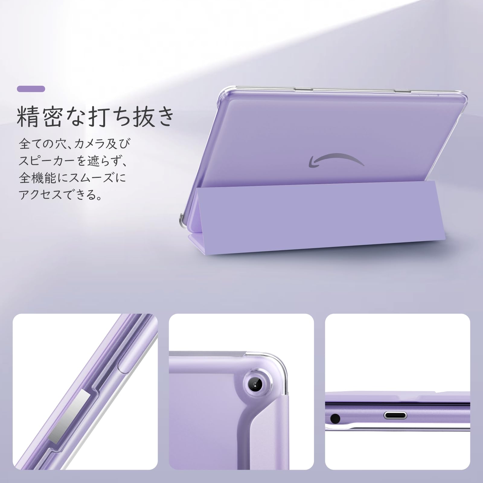 Fire HD 10 ケース 第13世代 TiMOVO Fire HD 10 2023専用ケース Fire HD 10 カバー 第13世代 2023モデル 三つ折り畳み式 PUレザー PC素材 スタンドケース マグネット内蔵 オートスリープ機能付き 耐衝撃 傷つき防止 軽量 保護カバー 無色半透明 タロイモパープル