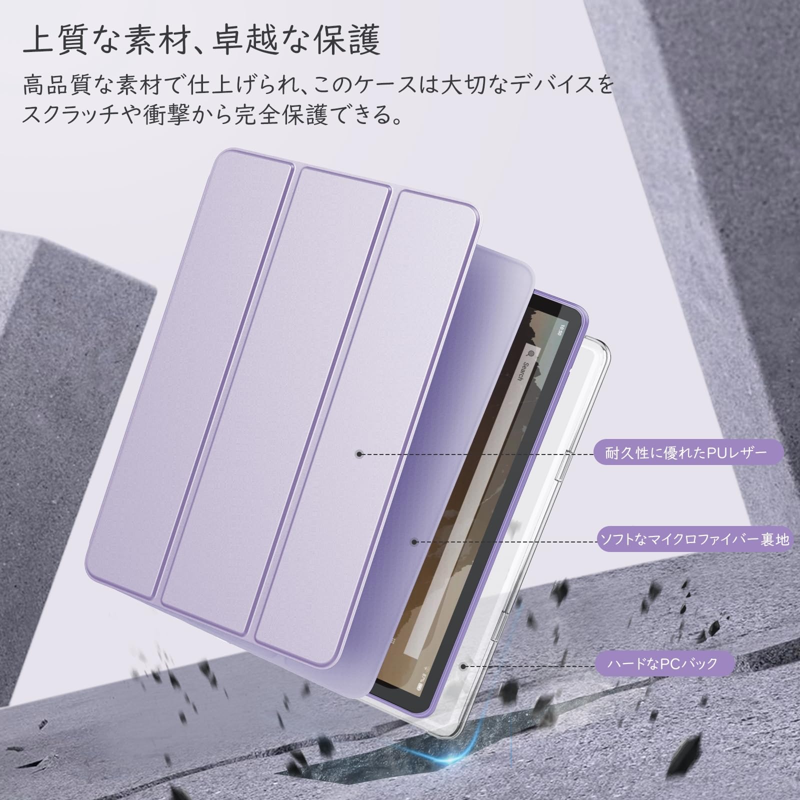 ■ 「上質な素材」 超薄型一体式のフロントカバーは柔らかい超極細繊維の裏地と耐久性に優れた高级PUレザー表面素材の組み合わせで、傷防止、防水、防塵、耐衝撃などの性能に優れています。