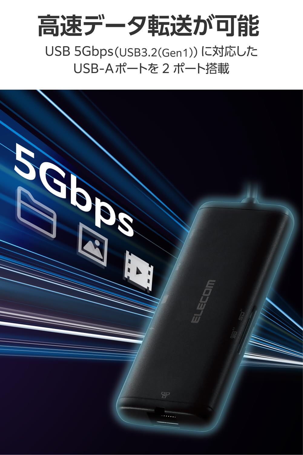 ■ USB 5Gbps(USB3.2(Gen1))に対応したUSBポートを搭載したドッキングステーションです。