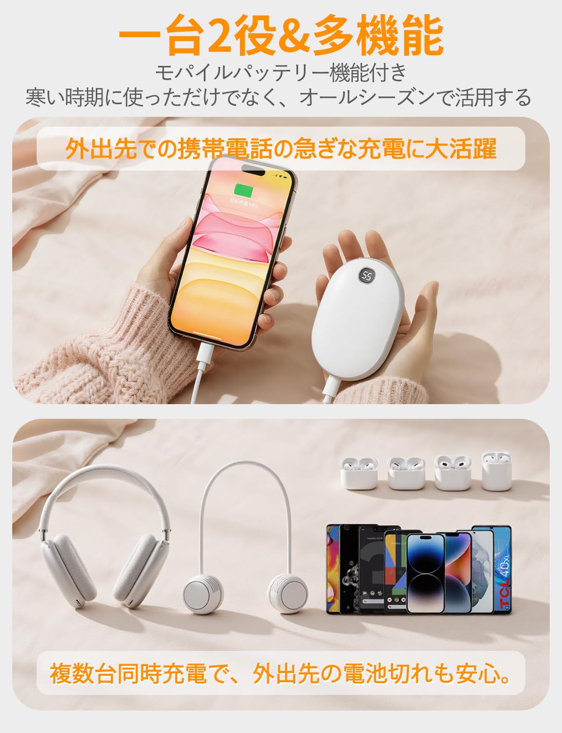 ■ 【1台2役&多機能】 13000mAhのリチウム電池が搭載され、モバイルバッテリーとしてもご利用いただけます。