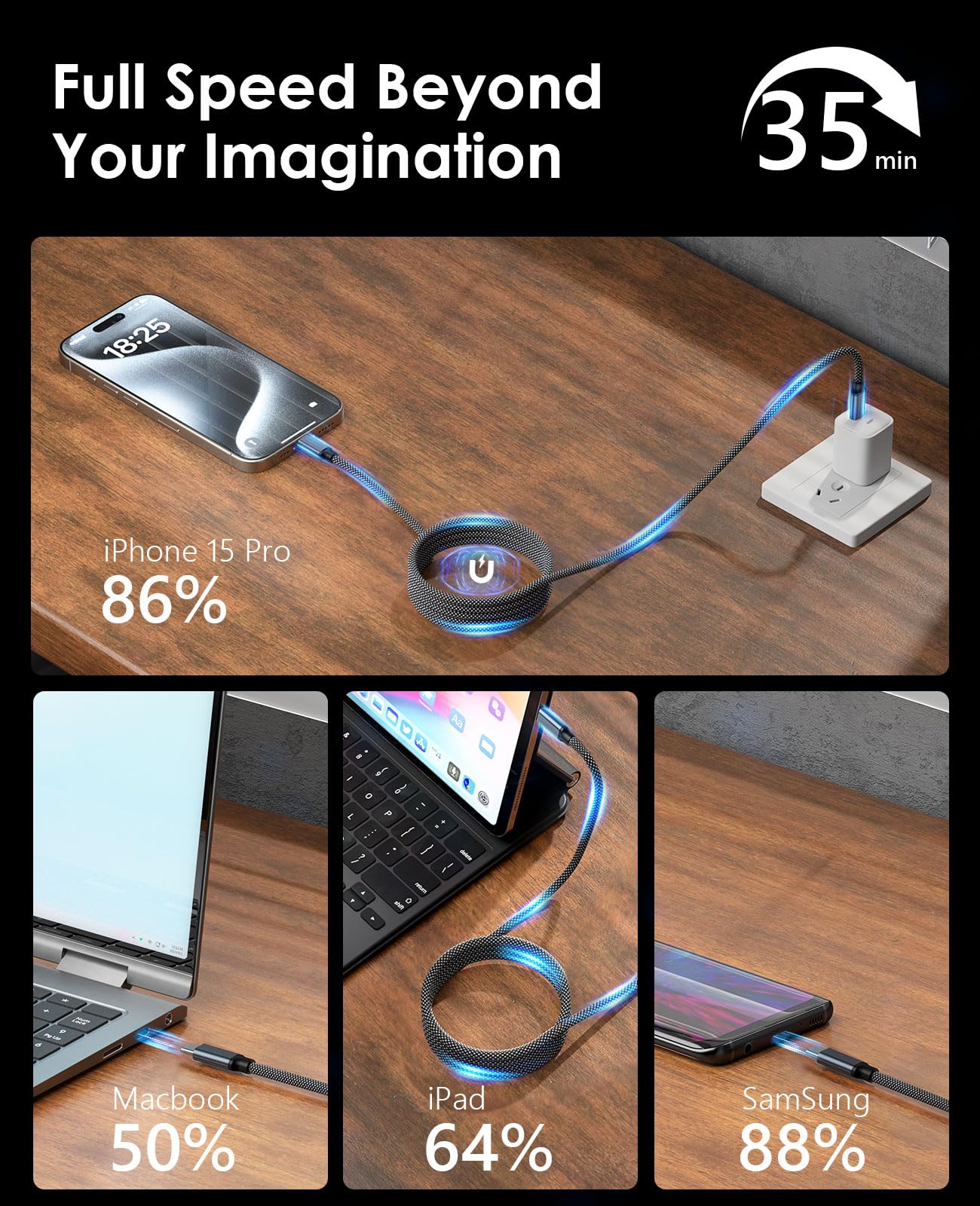 ■ 【磁気自動収納、特許取得済み】ケーブル自体が磁気を帯びるため、丸めてもばらけなくて勝手に吸着するのでケーブルタイなど要らず、片付け要らずキレイにまとめるusb c ケーブルです!この特許取得済の独自技術は当社の先進性、独自性、開発力が国内外の先進企業も認めた。