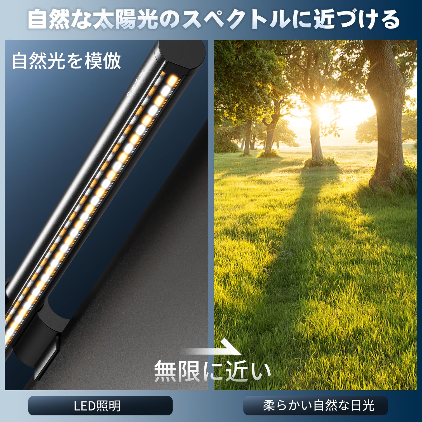 自然光を模倣し、デスクトップ照明を太陽光に近づけ、自然で快適な視覚体験を提供。