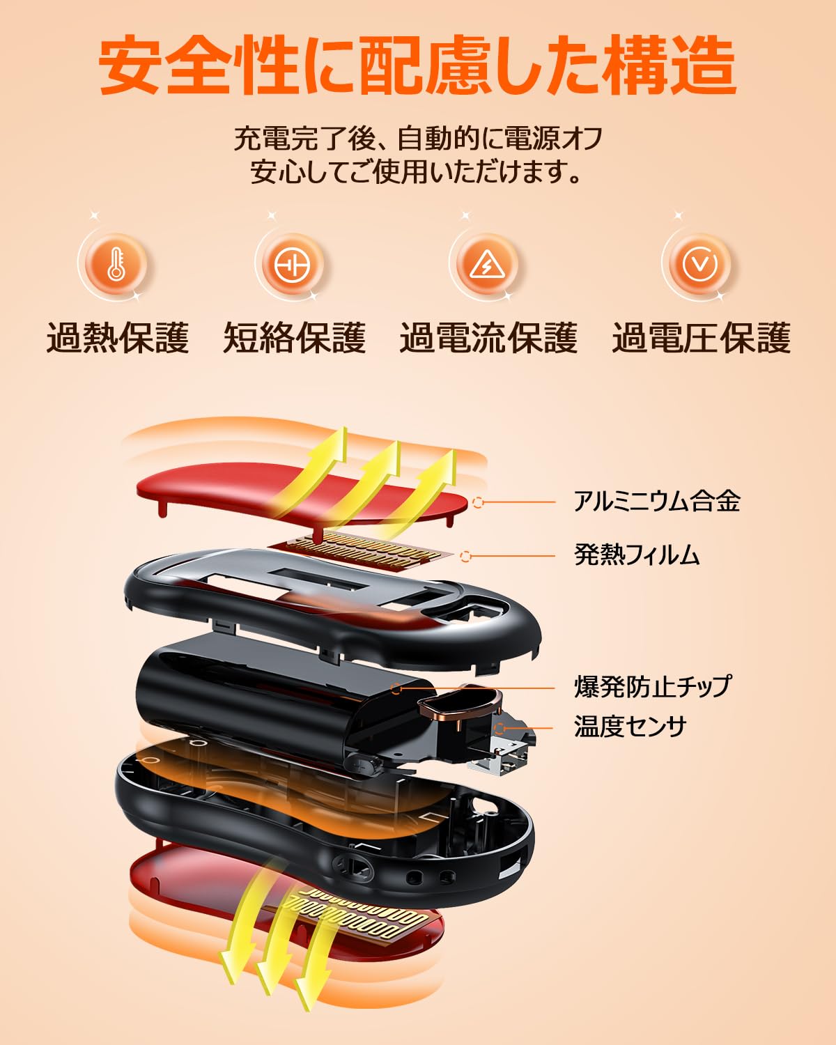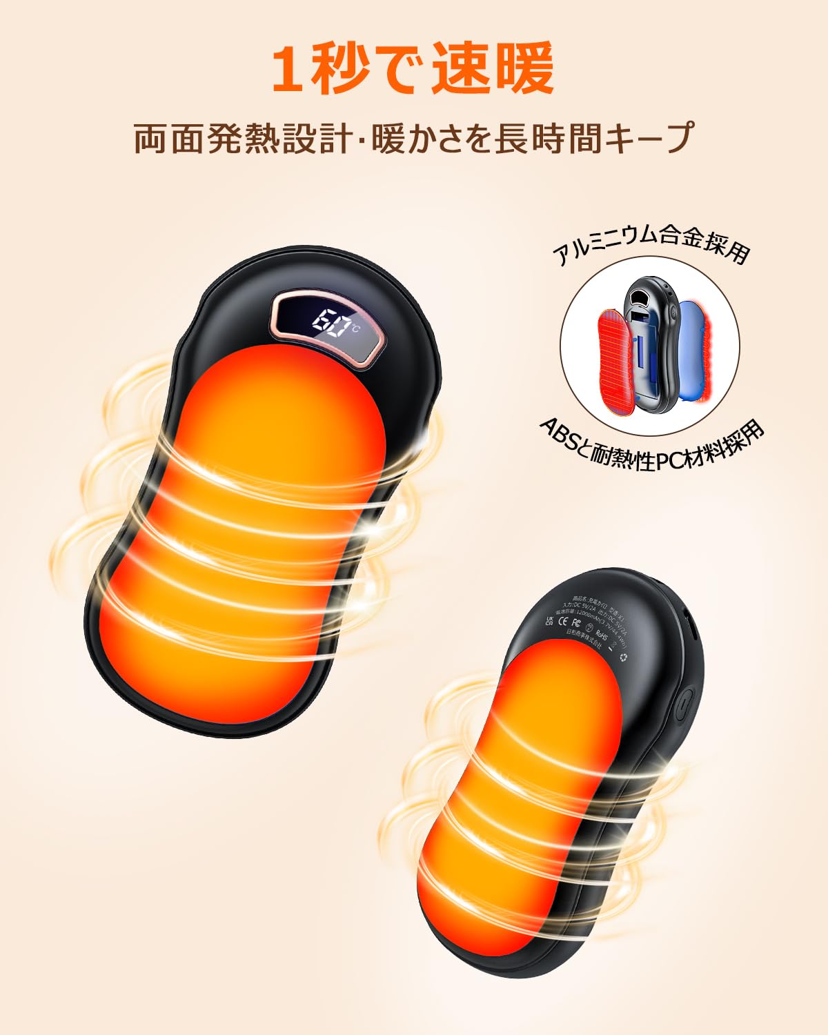 ■ 【3秒速暖、両面発熱】充電式カイロの表面と裏面には熱伝導率の良いアルミニウム合金を採用し、3秒だけで暖かくなり、驚きの速暖性を実現しました。