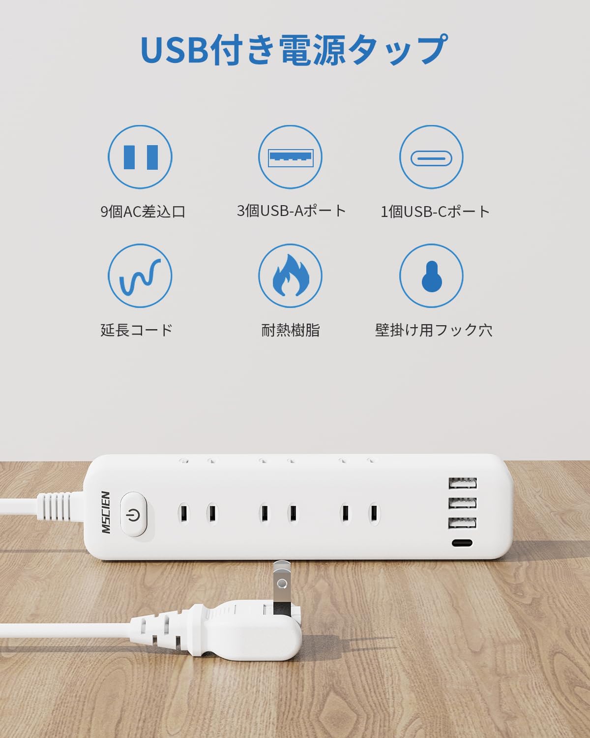 Mscien 延長コード 3m 電源タップ usb コンセント タップ 1個USBC 3個USBA 9個AC口 Mscien テーブル OAタップ たこあしコンセント 分岐 一括スイッチ付き