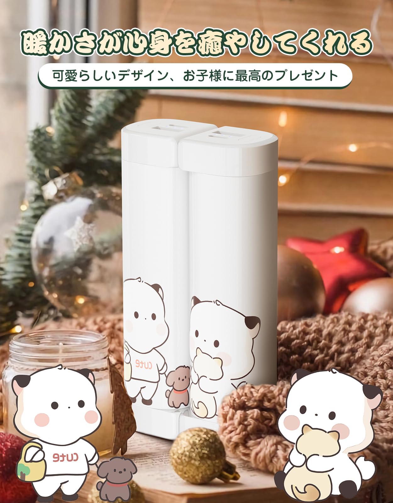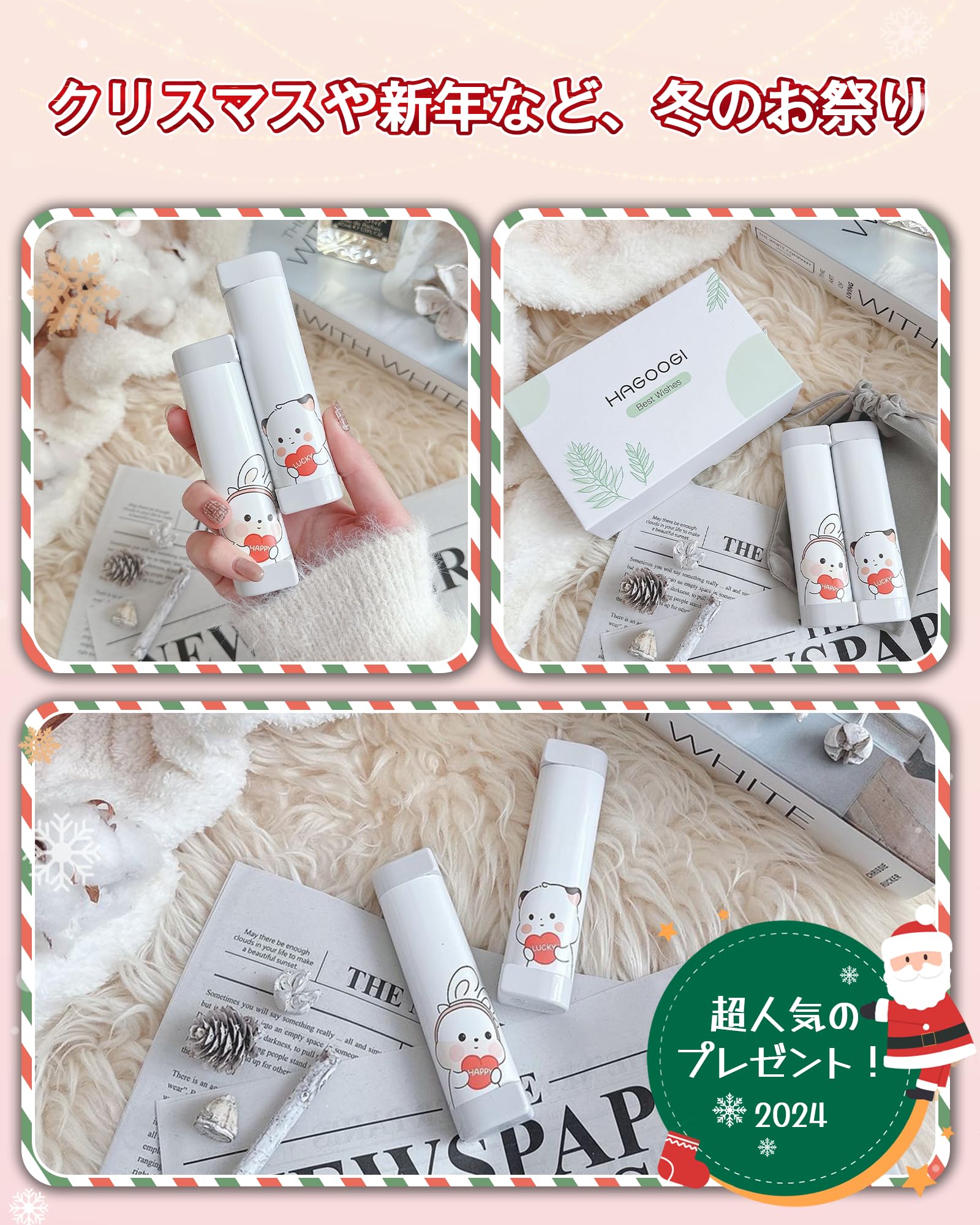 HAGOOGI (ハゴオギ) 充電式カイロ 360°全面発熱 3秒急速発熱 3階段温度調節 電気カイロ モバイルバッテリー機能 大容量 クリスマスプレゼント 10000mAh 14時間連続発熱可能 【新型磁気式/分離式設計】 小型 超軽量 持ち運びやすい 5V/2A急速充電 旅行 出張 通勤通学用 (Cute)