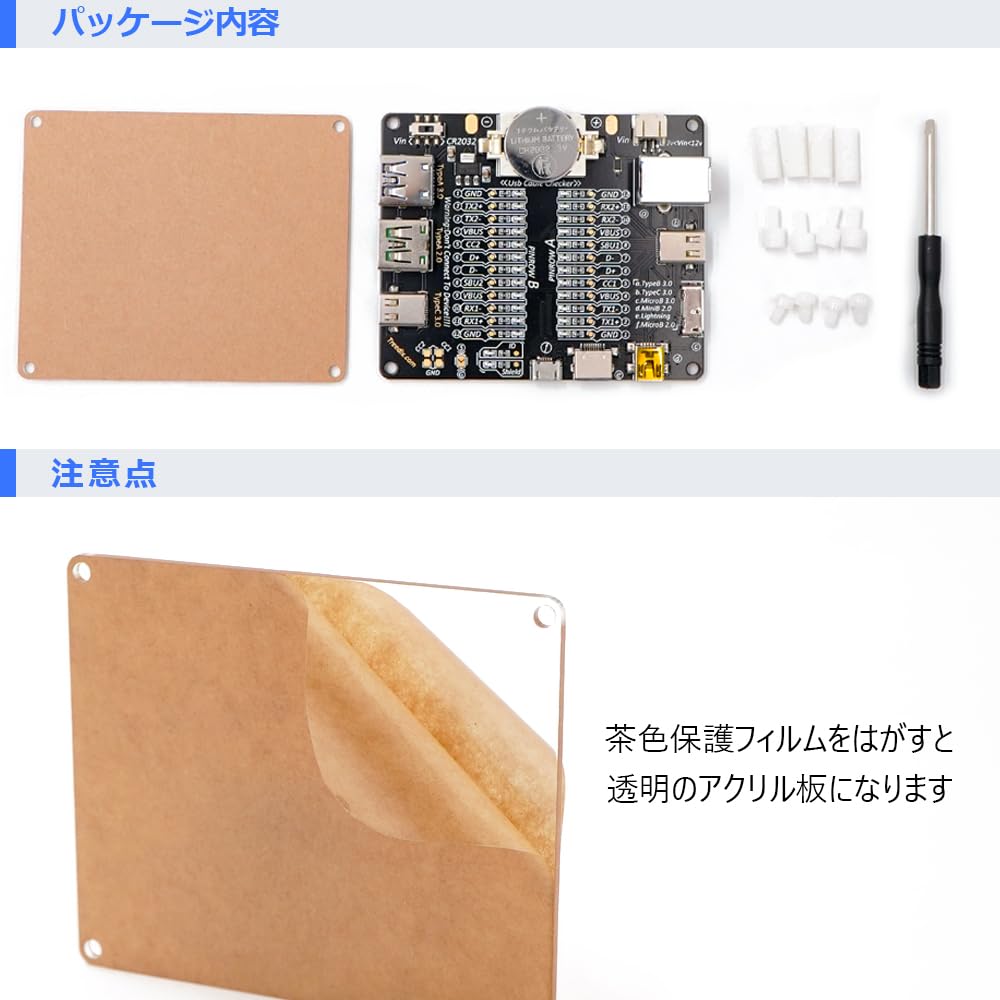 Treedix USBコネクタケーブルチェッカー アクリル保護板付き データ転送 充電性能テスター type C/micro/type A/type B対応