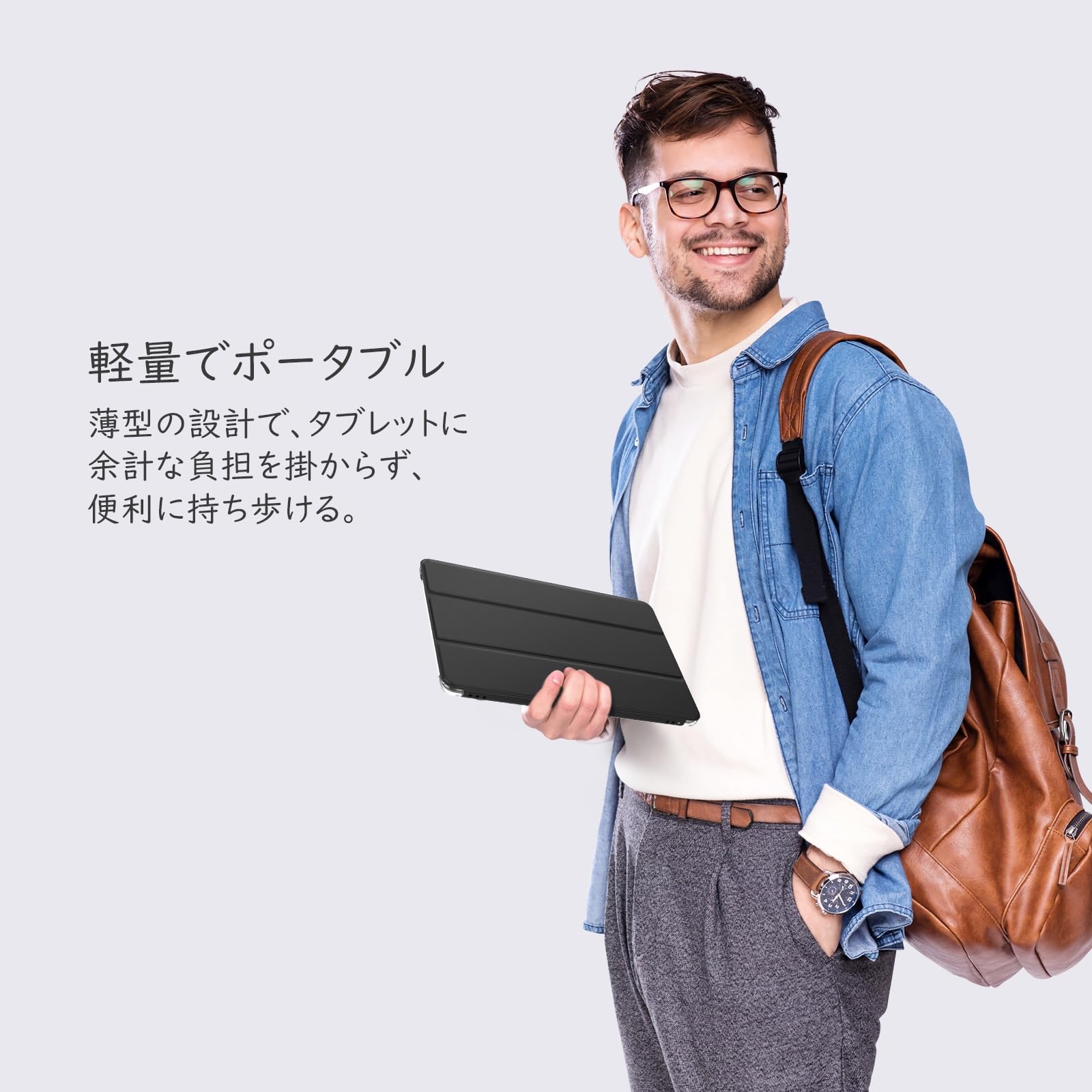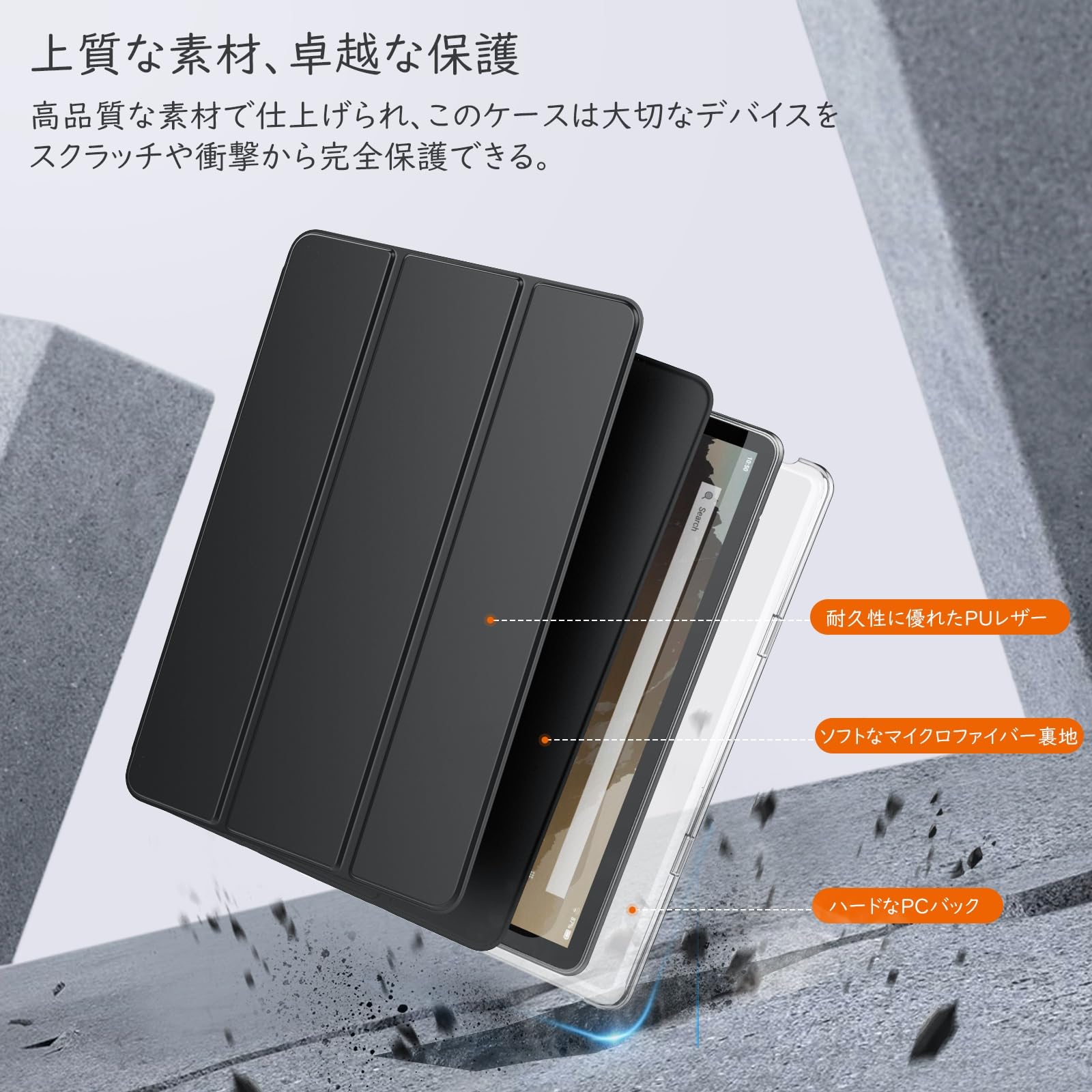 ■ 「上質な素材」 超薄型一体式のフロントカバーは柔らかい超極細繊維の裏地と耐久性に優れた高级PUレザー表面素材の組み合わせで、傷防止、防水、防塵、耐衝撃などの性能に優れています。