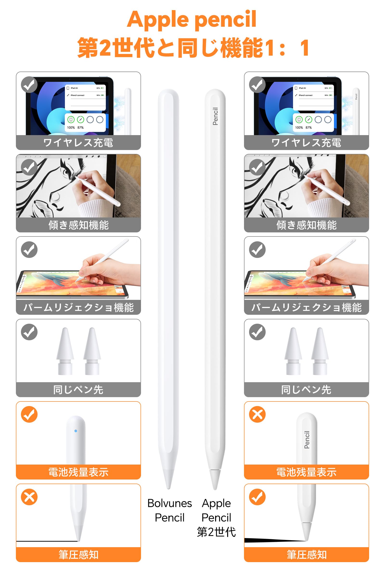 【正規認証品】アップルペンシル 第2世代 Bolvunes iPadペンシル 対応 ワイヤレス充電【先端技術突破】スタイラスペン 超高感度 iPad ペン ipad pencil 磁気吸着充電/0遅延/傾き感知/誤作動防止 iPad Pro 12.9'(第3/4/5/6世代)/iPad Pro 11' / iPadAir(第4/5世代)/ iPadmini 6対応(K2)