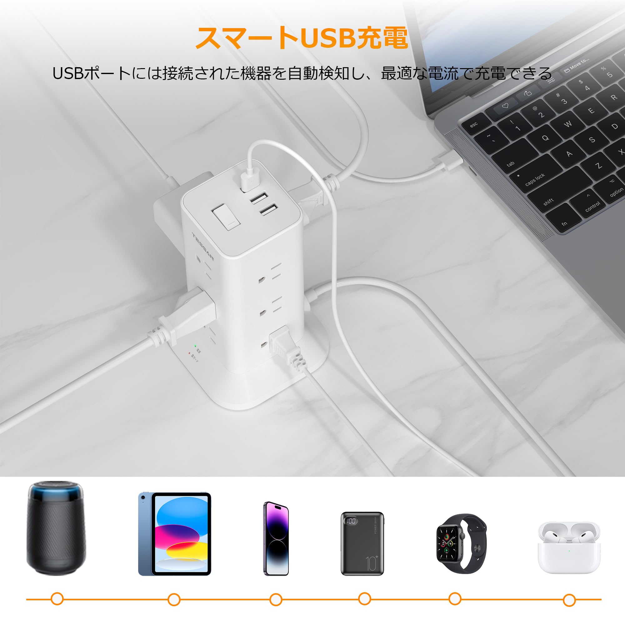 ■ 【1台15役 タワー型電源タップ usb付き】このusbタップは12個のACコンセントと3つのUSBポートが搭載されており、一度に複数のデバイスを同時に充電可能です。