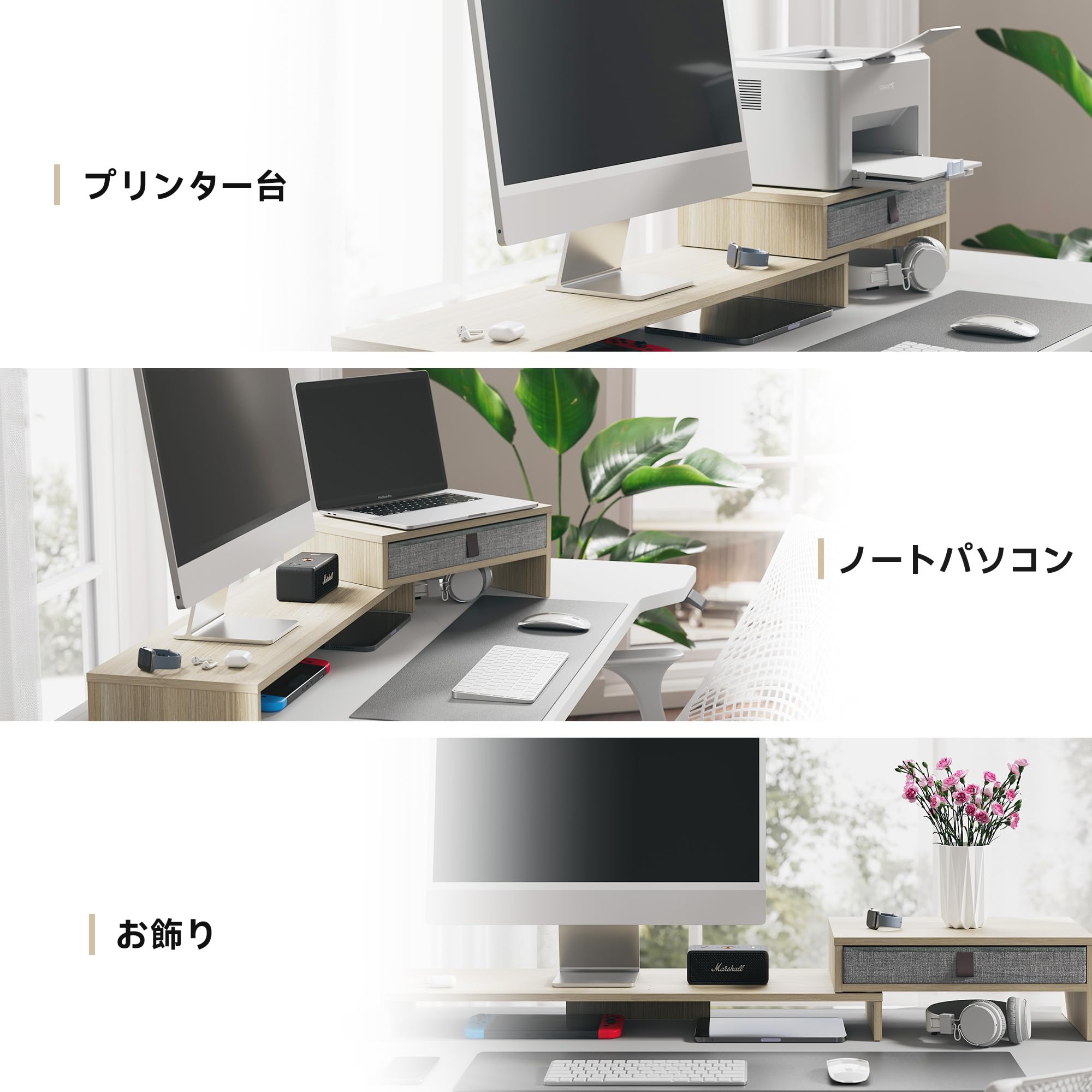 Fenge モニタースタンド 木製天板 PC台 78.3-113cm 引き出し収納オークG04D1083C