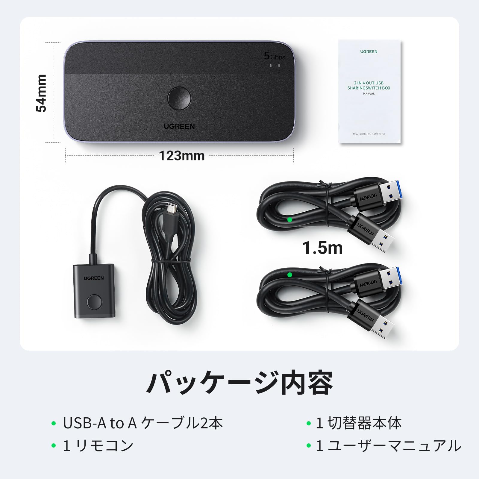 ヒント:購入すると、USB 3.0切替器1個、リモコン、USB-A to Aケーブル2本がもらえます。