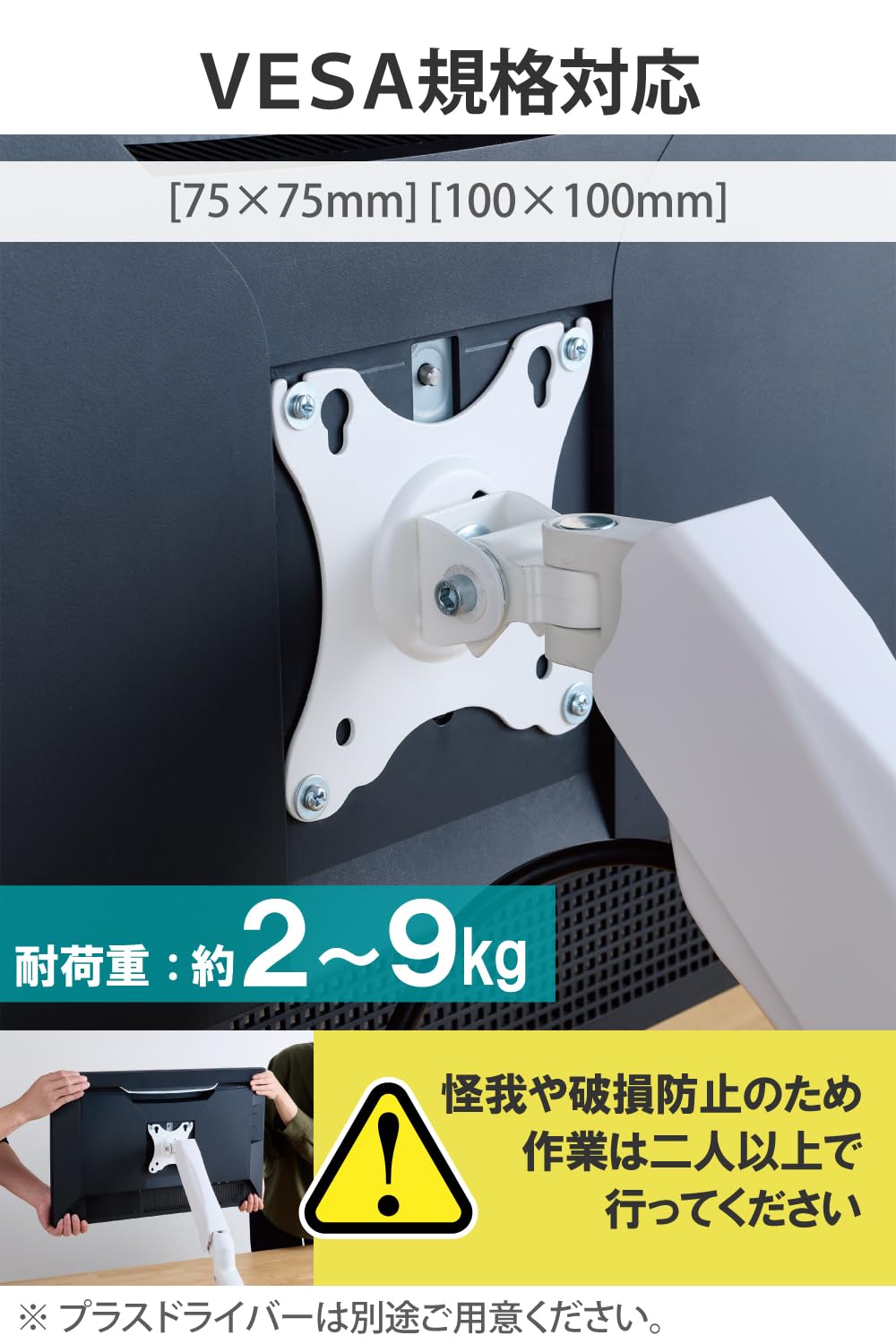 ■ VESA規格(75mm×75mm、100mm×100mm)に準拠したモニターに対応しています。