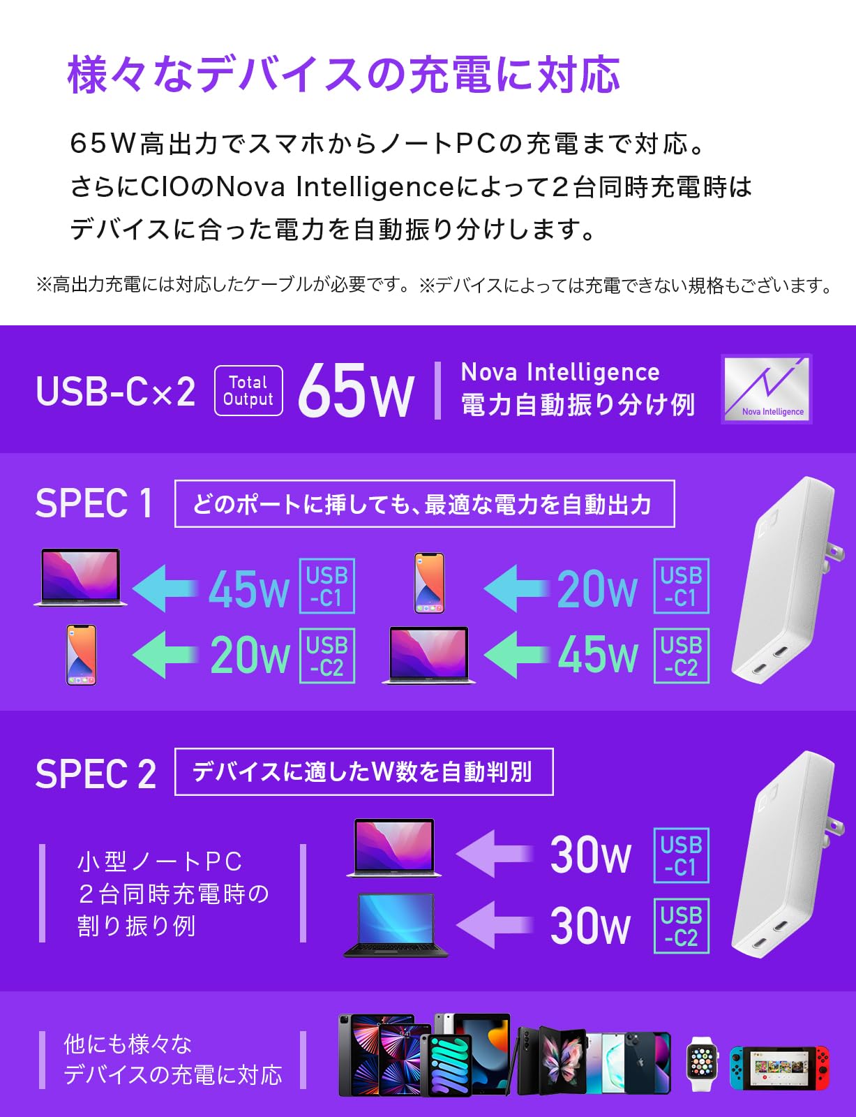 ■ 【CIO独自制御技術 NovaIntelligenceを搭載】端末に合わせて電力を自動で調整してくれる為、ポートの出力を気にしながらデバイスを繋ぐ必要がなく、同時充電時もストレスなく快適に充電が可能です。