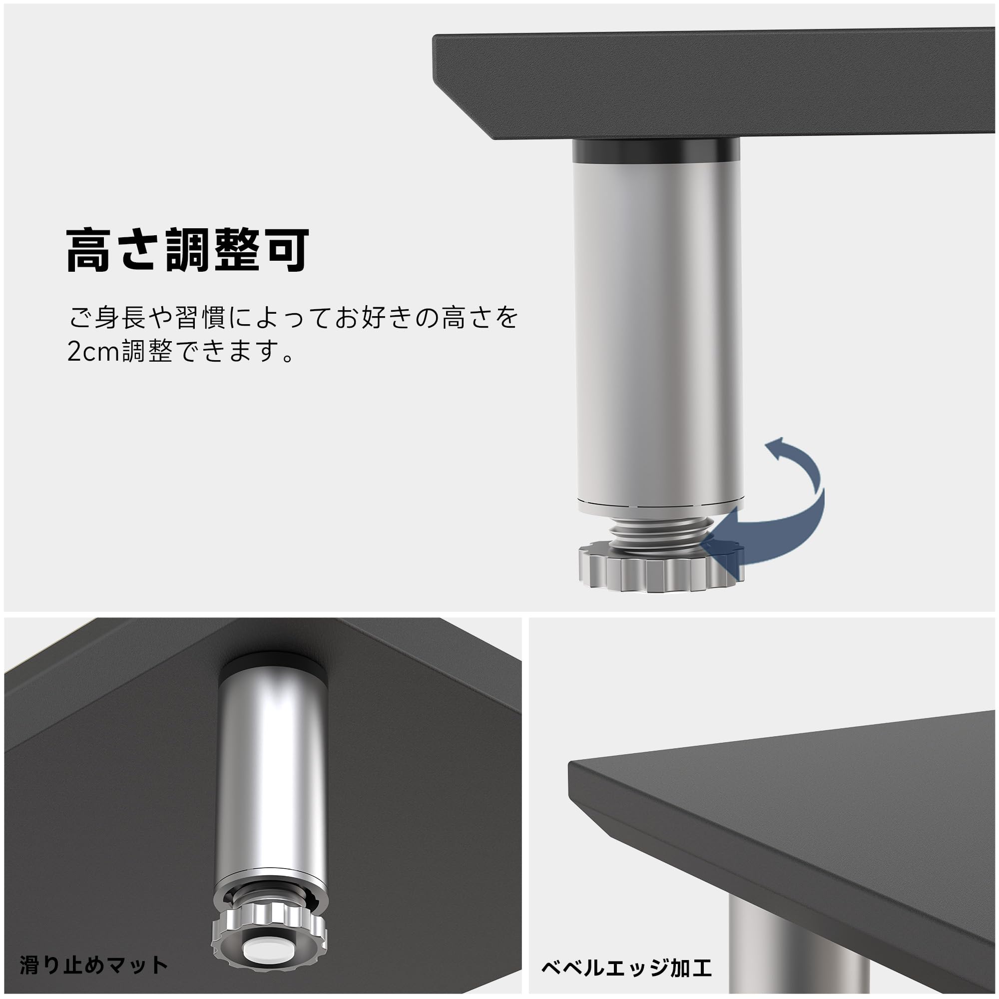 ご身長や使用習慣によって、机上台の高さを2CM調整でき、さまざまなニーズに応えます。