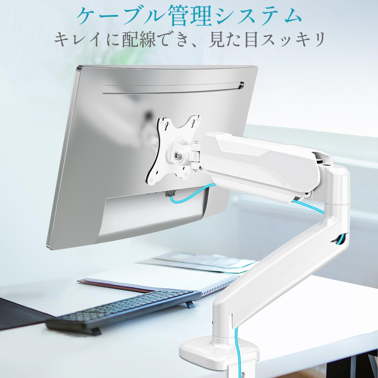 MOUNTUP PCモニターアーム ディスプレイアーム 13~32インチ対応 ガススプリング式 耐荷重2~8kg 液晶モニタースタンド クランプ式 グロメット式 VESA対応 75x75mm 100×100mm (ホワイト)