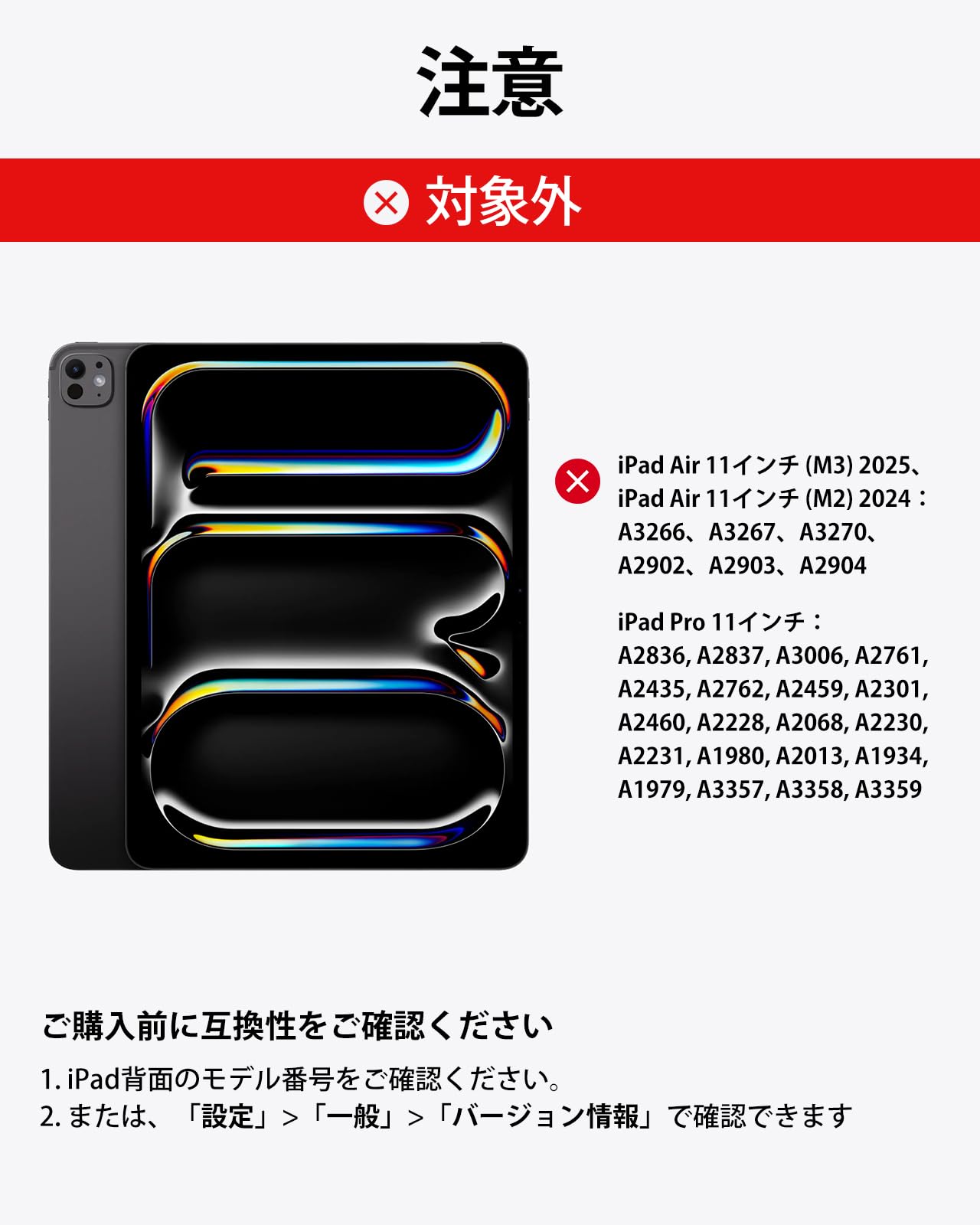 ■ 互換性:iPad第11世代(A16,2025)/第10世代、モデルA3354、A3355、A3356、A2696、A2757、A2777、A3162のみ対応
