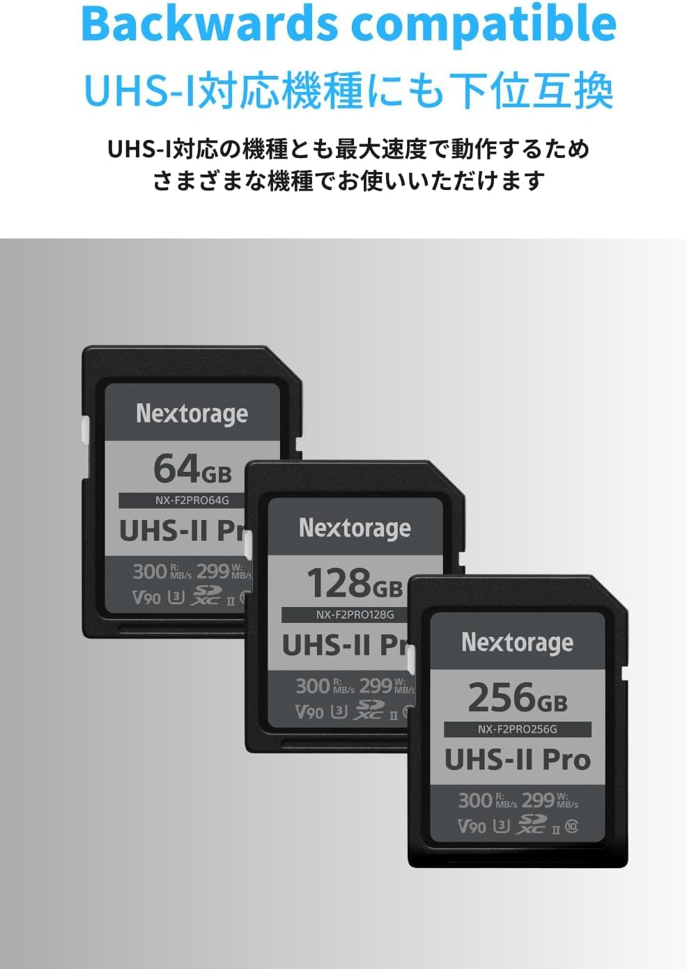 Nextorage 日本メーカー UHS-II V90 64GB SDXC SDカード 最大読出し速度300MB/s 最大書込み速度299MB/s 高性能pSLCフラッシュメモリ搭載 高速連写 4K/8K録画 NX-F2PRO64G ネクストレージ メモリカード