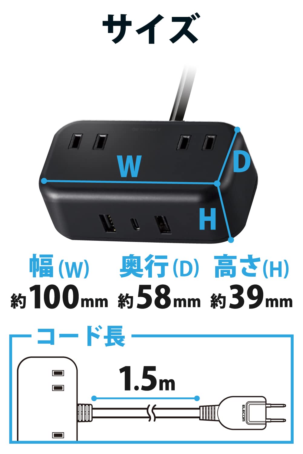 ■ 2つの差込口と1つのUSB Type-C(TM)(USB-C(TM))ポート、2つのUSB-Aポートを備えたUSBタップです。