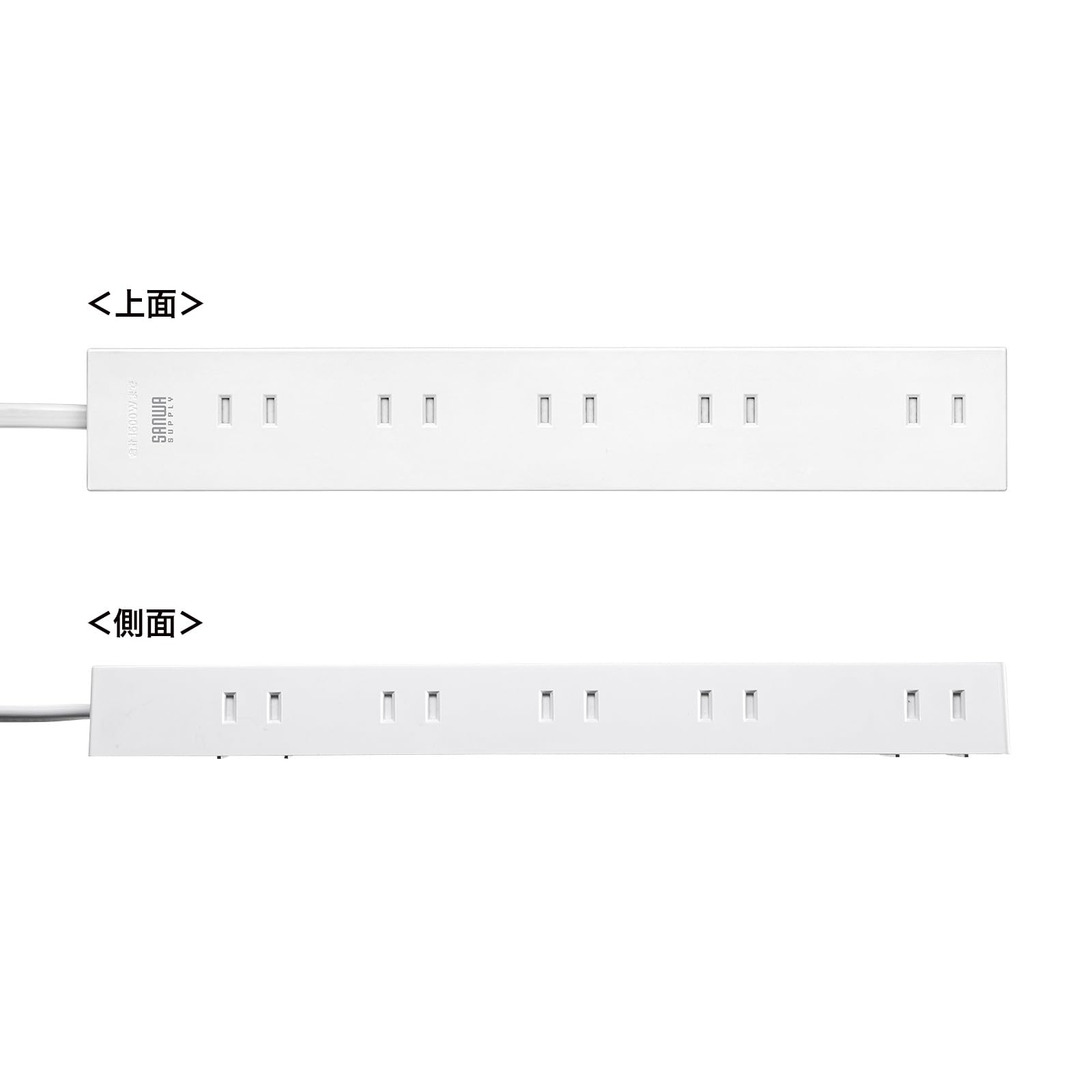 サンワサプライ(Sanwa Supply) 電源タップ 10個口・2P (2m) たくさん挿せるレイアウト 強力ネオジムマグネット ほこりシャッター スイングプラグ ホワイト TAP-2210-2W