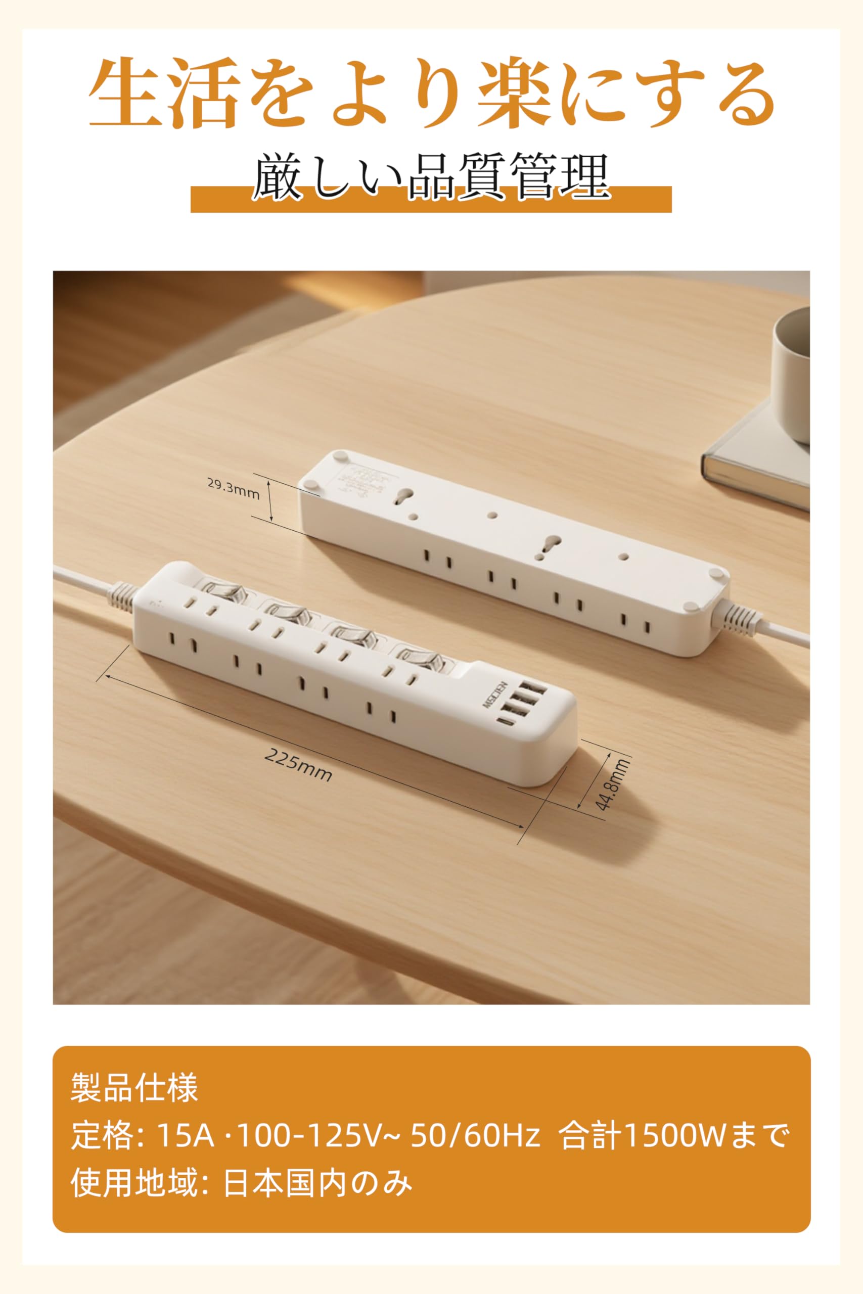 ■ 【スイッチ付き・節電・省エネ】コンセントには接続機器のON/OFFができるスイッチが付いており、使わないところは切って電力を節約することができます。