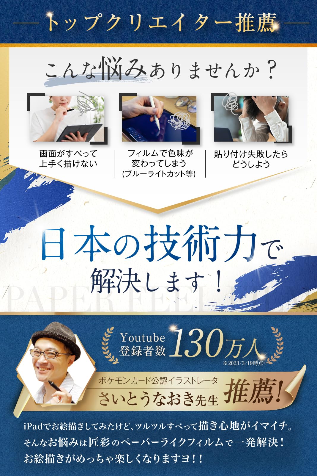 ■ 【極める 描き心地 】 ペーパーライクフィルム の摩擦抵抗を 上質紙 よりも向上させ、 描き心地 の向上を図りながら「 紙に描いている感覚 」を追求。