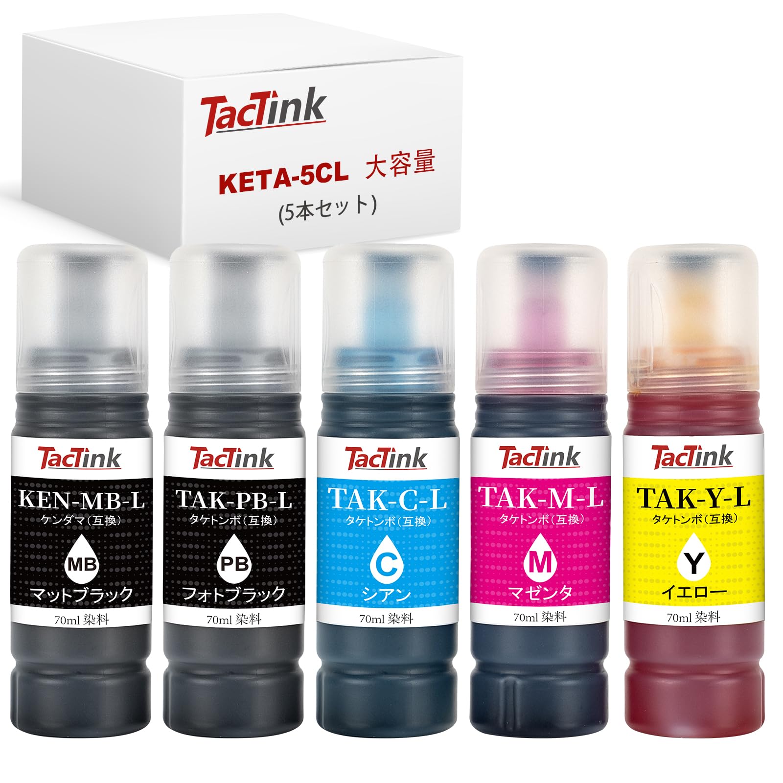 KETA-5CL エプソン(Epson)対応 ケンダマ タケトンボ 5色パック 互換インクボトル 標準の1.8倍大容量 (KEN-MB/TAK-PB/TAK-C/TAK-M/TAK-Y) 70ml/本 高発色 個別包装 国際認証 対応機種EW-M752T EW-M752TB EW-M754TW EW-M754TB