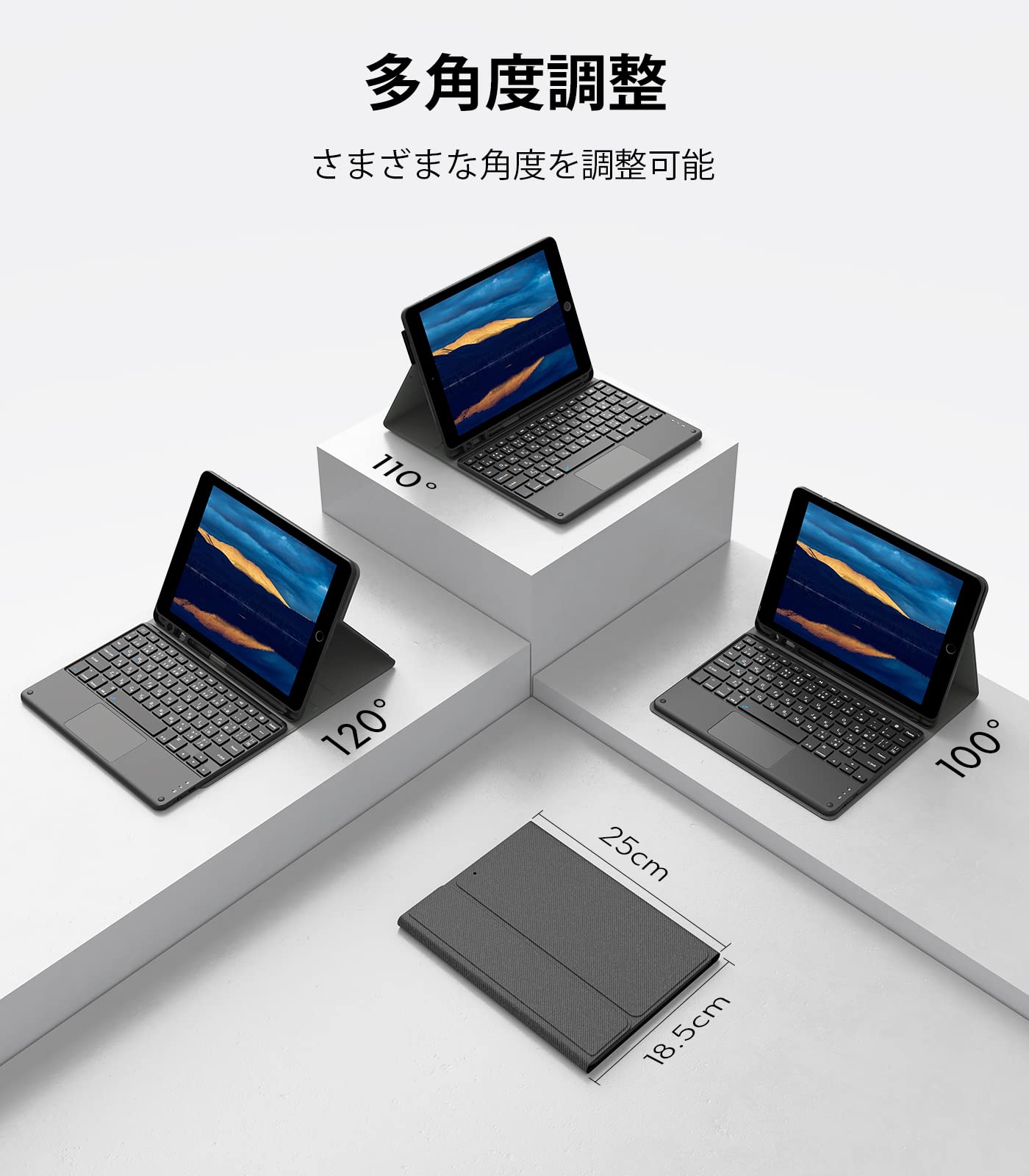 Earto iPad 9世代 8世代 7世代 キーボードJIS基準日本語配列 iPad 10.2/10.5 タッチパッド搭載 脱着式 多角度調整 [ペンシルホルダー付き] type-c充電式 マグネット アイパッド10.2インチキーボード[ i Pad 10.2/Air3/Pro 10.5(2017)兼用] 黒