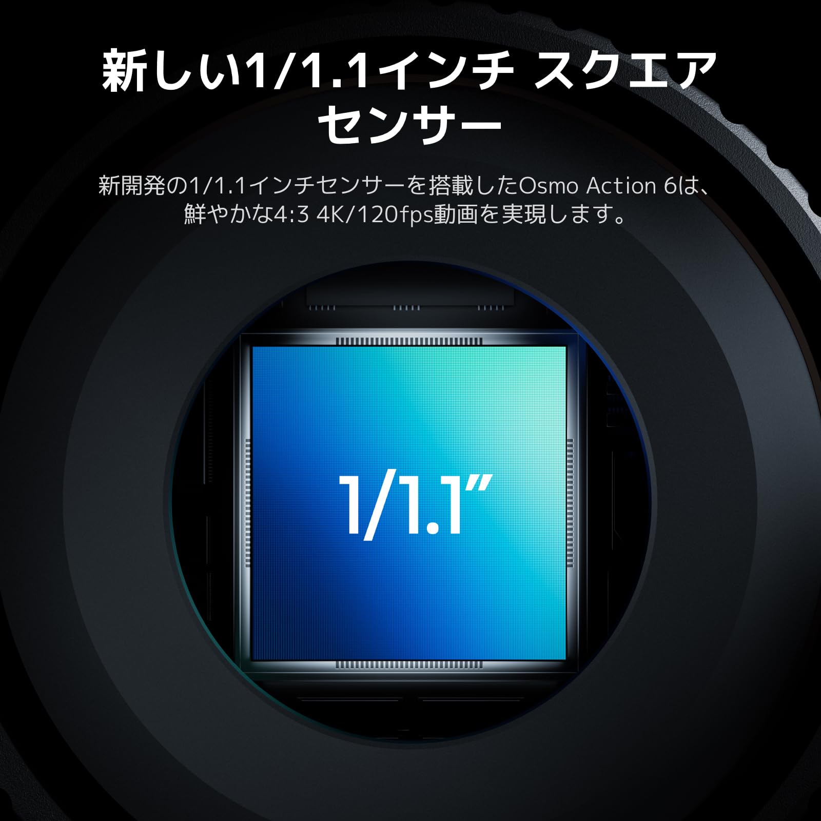 DJI Osmo Action 6 スタンダードコンボ アクションカメラ 1/1.1インチスクエアセンサー搭載 f/2.0–f/4.0可変絞り 耐寒性 4時間バッテリー エキサイティングな瞬間を素早く撮影できる4Kアクションカメラ