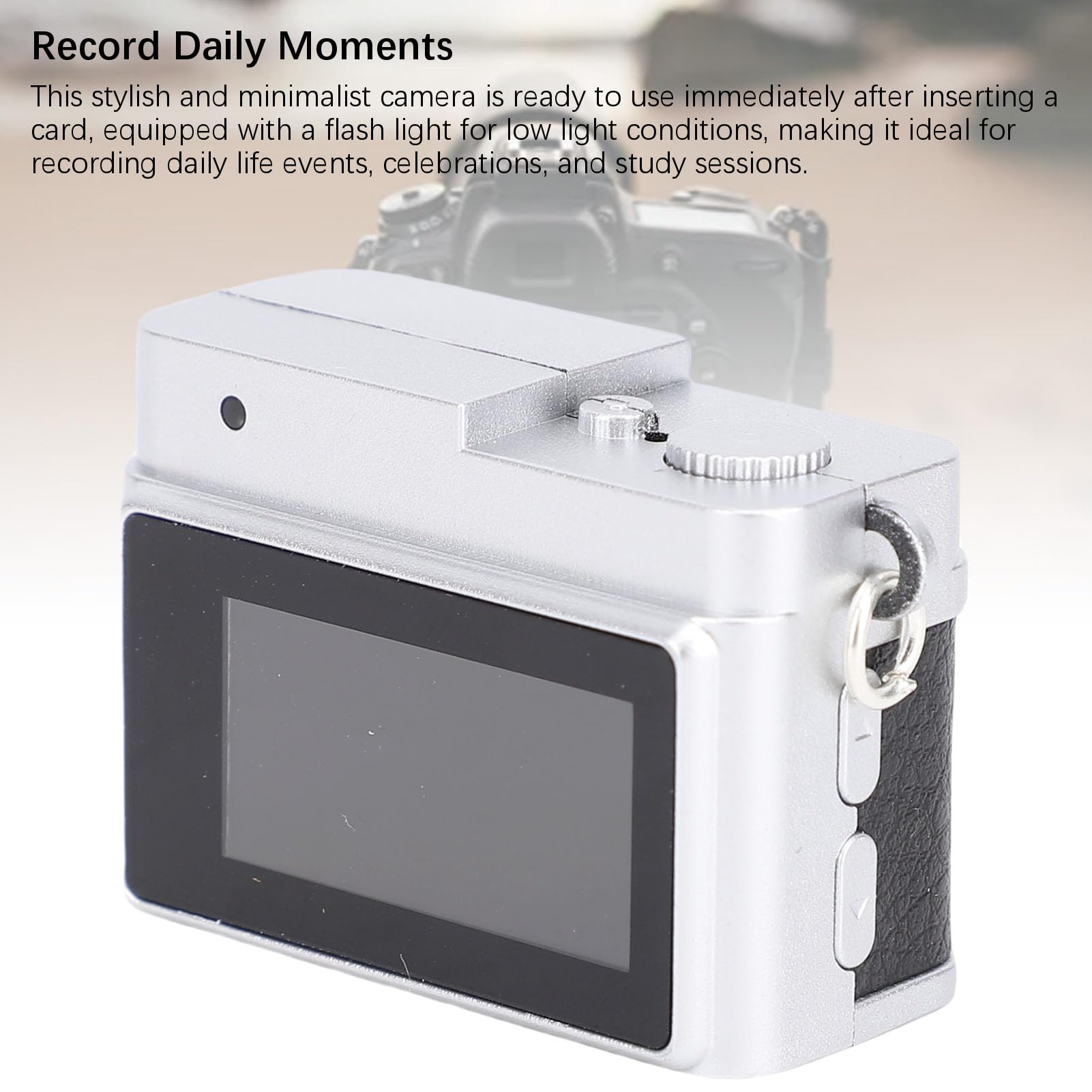 * 毎日の瞬間を記録する:このスタイリッシュでミニマリストのカメラは、カードを挿入した直後に使用する準備ができており、低光の状態にフラッシュライトを装備しているため、日常のイベント、お祝い、学習セッションの記録に最適です。