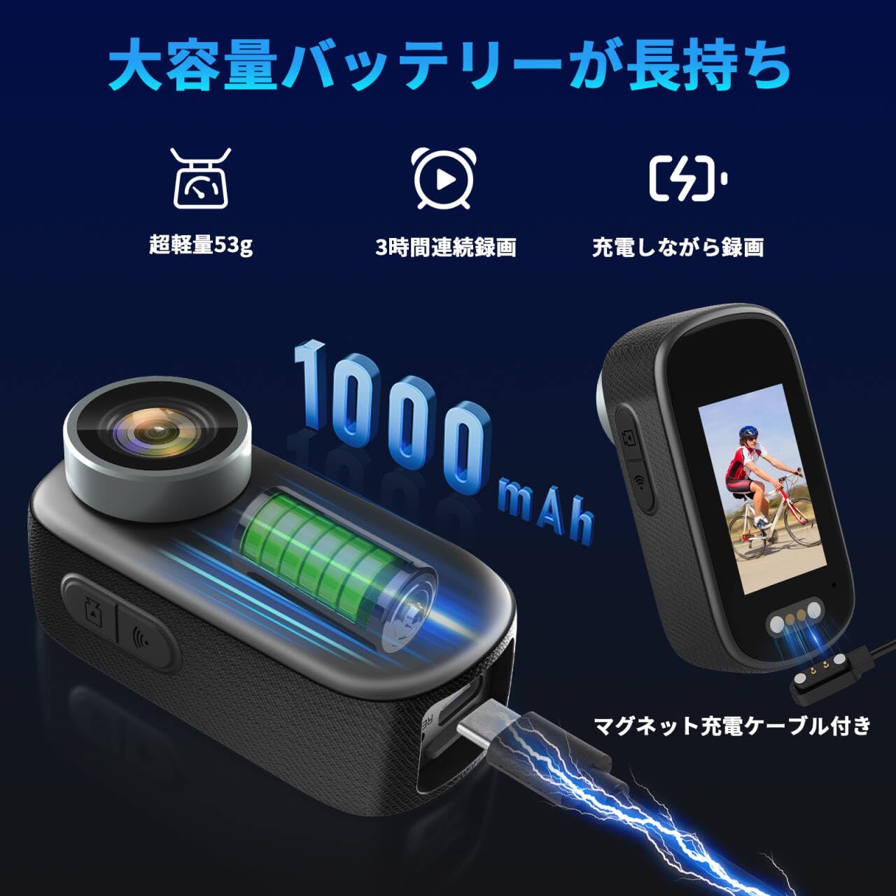 * 【IP65防水防塵&広く活用】このスポーツカメラはIP65相当の防水等級を有し、雨、水しぶき、湿気などの過酷な環境にも耐える防水レベルには、突然の雨でも慌てる必要がありません。また防塵にも優れているので、粉塵にさらされても土埃が内部に侵入する心配も無用です!海外旅行にも、家族行事にも持っていき、思い出をすべて映像に残しましょう。また、登山、スキー、ロッククライミング、サイクリング、ハイキング、サーフィン、または車載カメラや空中カメラとして、ほとんどどこでも使用することができます。