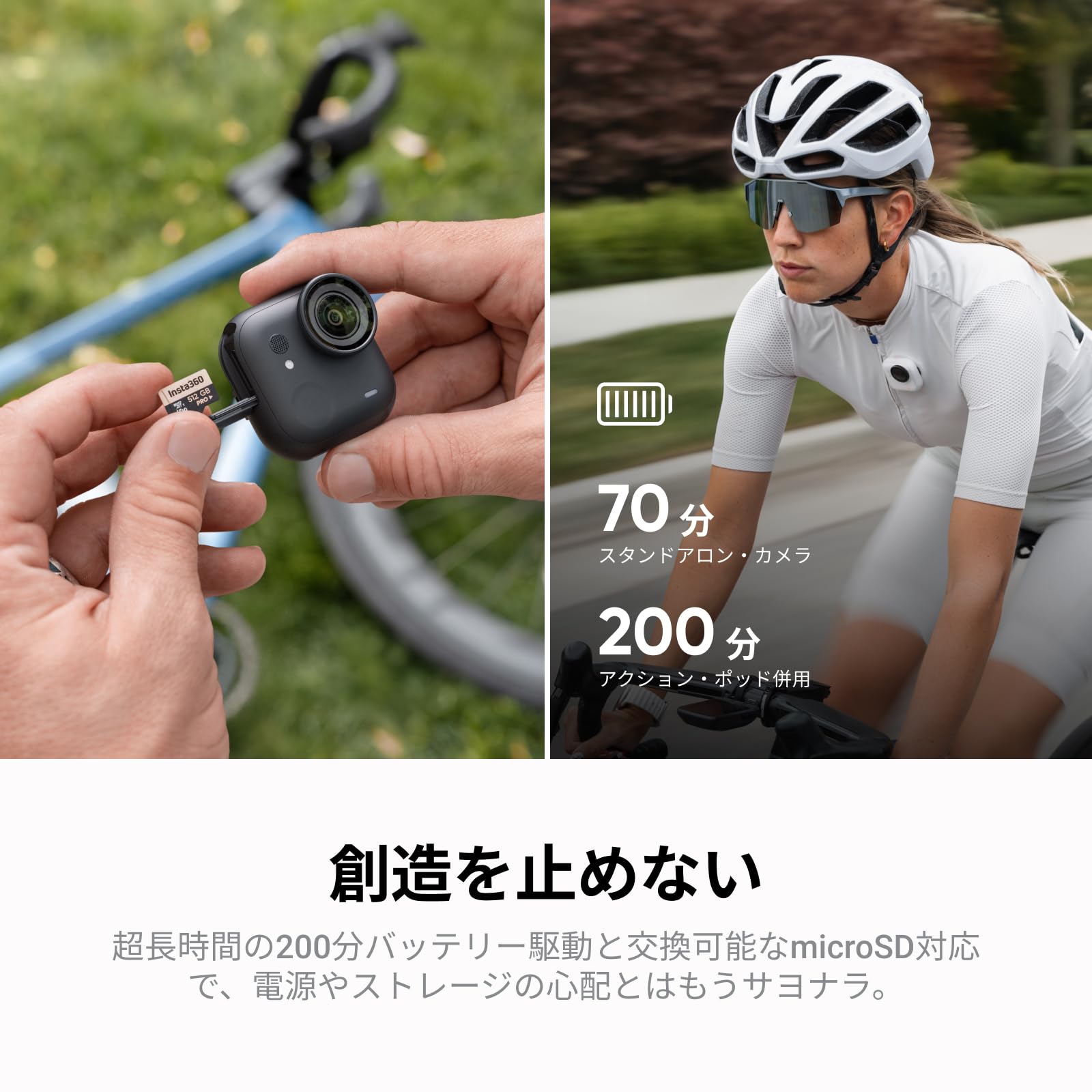 【高梨沙羅さん愛用】Insta360 GO Ultra クリエイターキット ホワイト|ポケットサイズから世界が変わる!超軽量&10m防水・どこでも装着・手ブレ補正・3時間撮影OK|ランニング・サイクリングに最適!