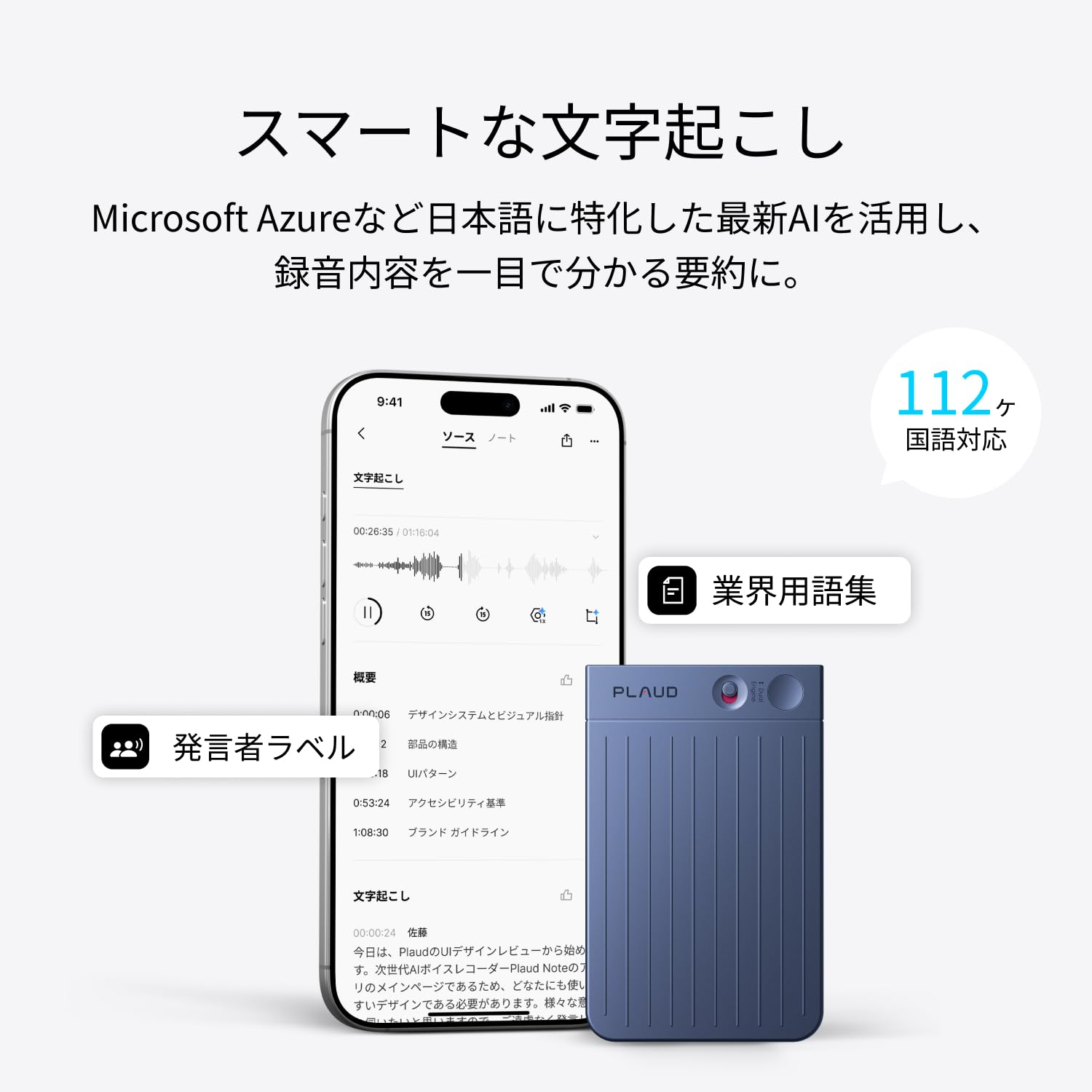 ■ 【プロ仕様の文字起こし】AIが音声を自動的に文字起こしし、日本語を含む112言語に対応。