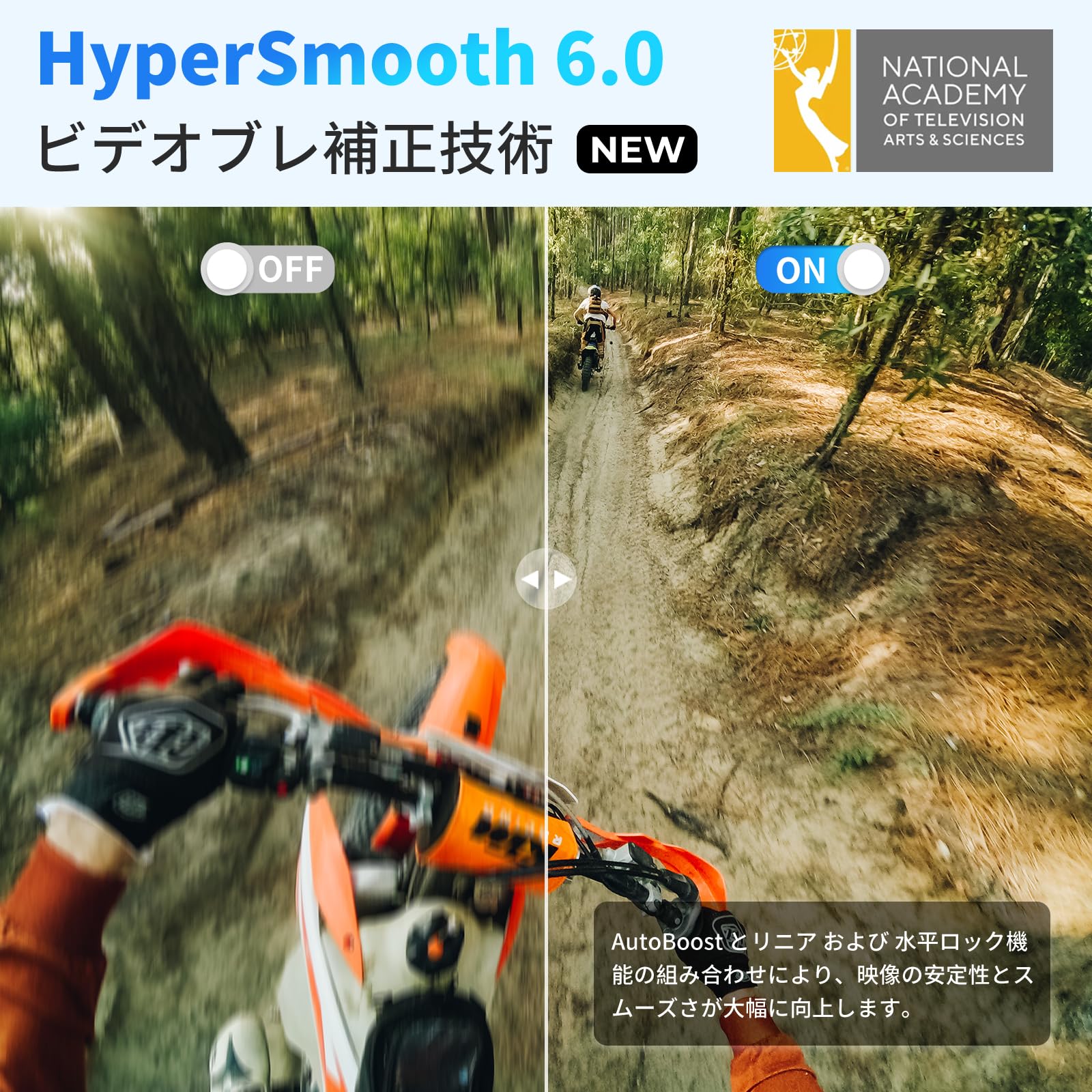 * 【HyperSmooth 6.0搭載】エミー賞受賞の手ブレ補正機能がさらに進化。AutoBoostと水平ロック機能で、アクション中も滑らかな映像を実現。