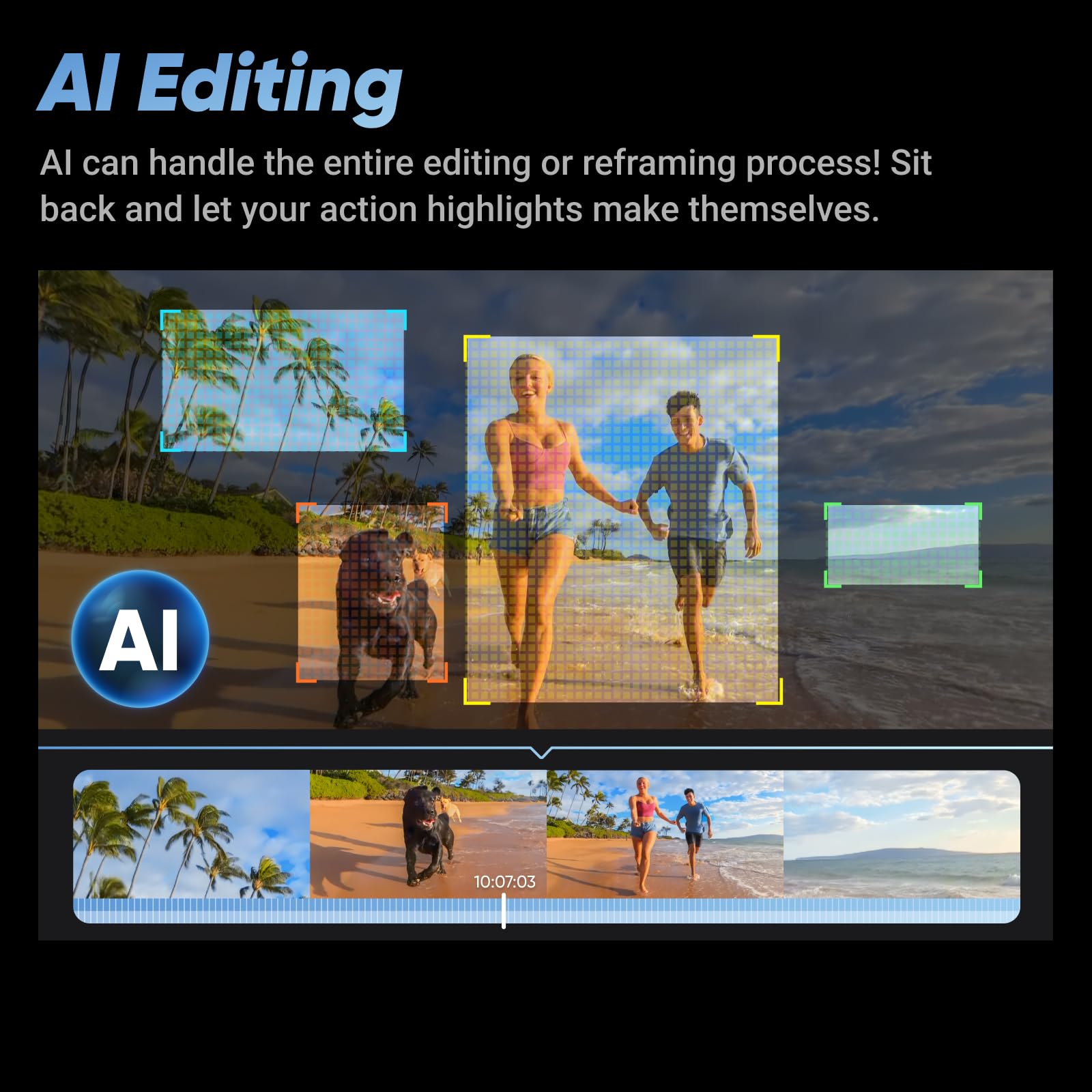 * シンプルで簡単なリフレーム - Insta360 X4を持って外に出て撮影する場合、構図を気にする必要はありません。まずは撮影して、あとからAI搭載のInsta360アプリで簡単にリフレームできます。