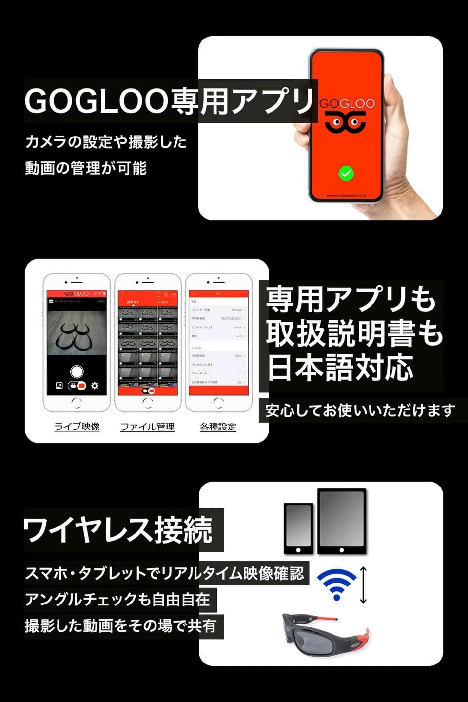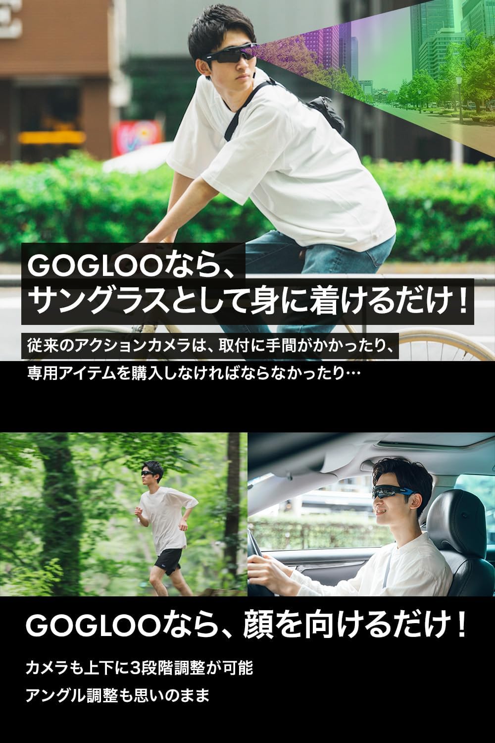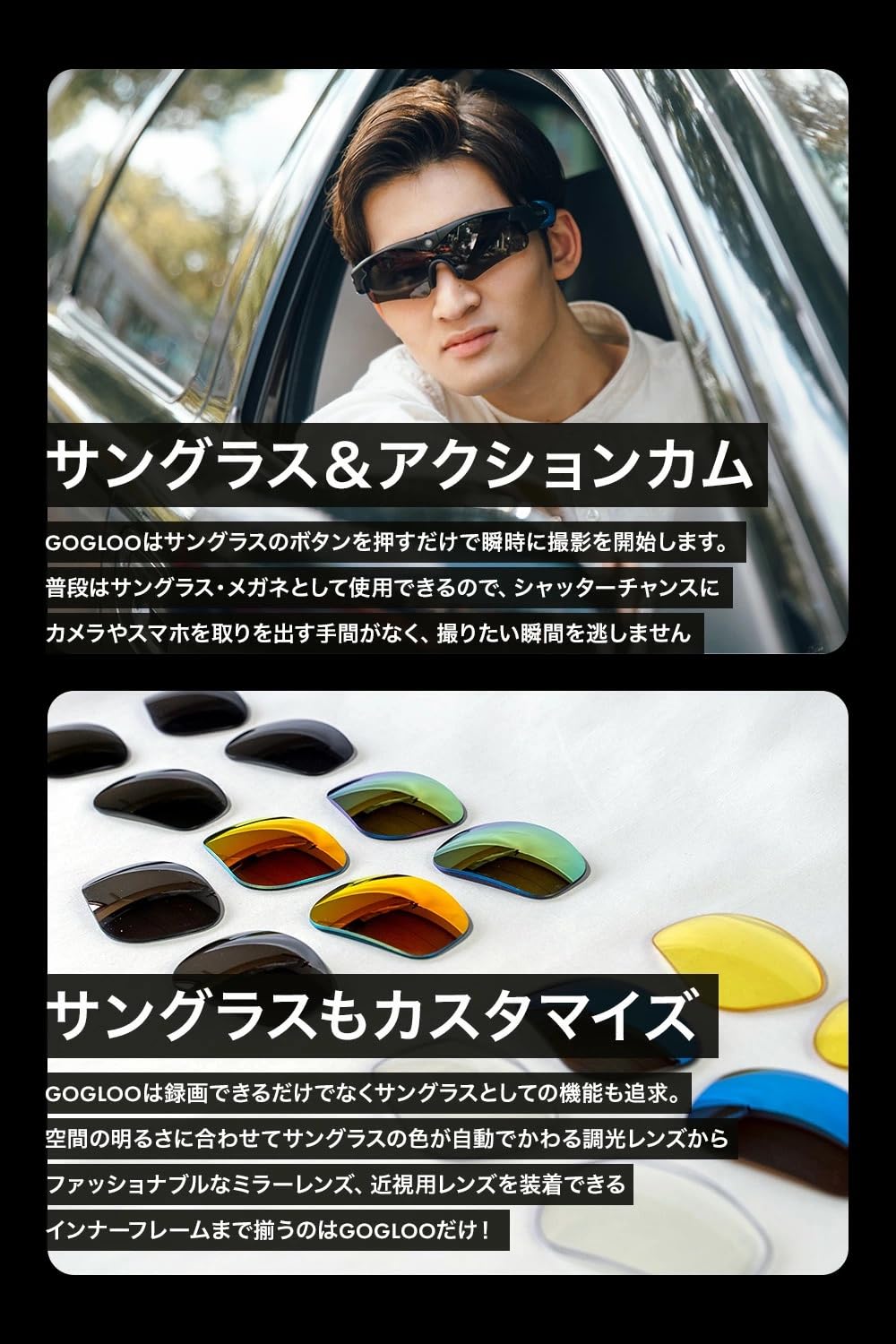 * 【さまざまなシーンで使える】ウェアラブルカメラ(別売)は、サイクリング、ドライブ、登山、釣り、バイク、ゴルフ、ジョギング、野球、スキー、スノボなどの様々なアクティビティにご使用いただけます。また、旅行、ショッピング、料理、キャンプ、DIY、ペットの散歩、子供の成長記録、作業手順などの普段の何気ないふとした瞬間も記録に残すことが出来ます。今までのアクションカメラとは違う、『カメラ内蔵スポーツサングラス GOGLOO』で、手ぶらで見たままの景色を録画しましょう!