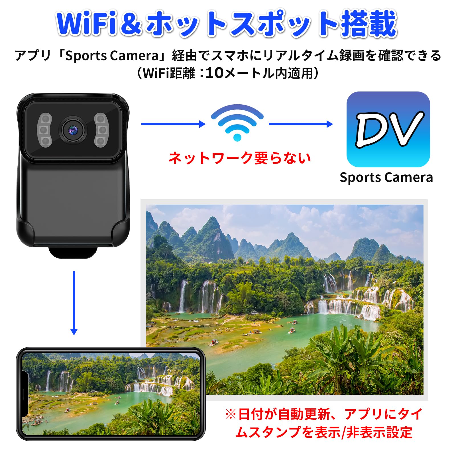 * 【Wi-Fi&APホットスポット搭載】小型カメラの Wi-Fi ソフトウェアは「Sports Camera」 で、アプリは Android および iOS システムにダウンロードできます。 Wi-Fi に接続すると、アプリ「Sports Camera」経由でスマホにリアルタイム録画を確認でき、アプリにアクセスしてカメラを制御したり、ファイルを転送したりできます。Wi-FiモードにSDカードを挿入しなくても録画できます。※APホットスポット距離:10メートル内適用、AP接続モードだけ対応、IP接続モードに対応していません。