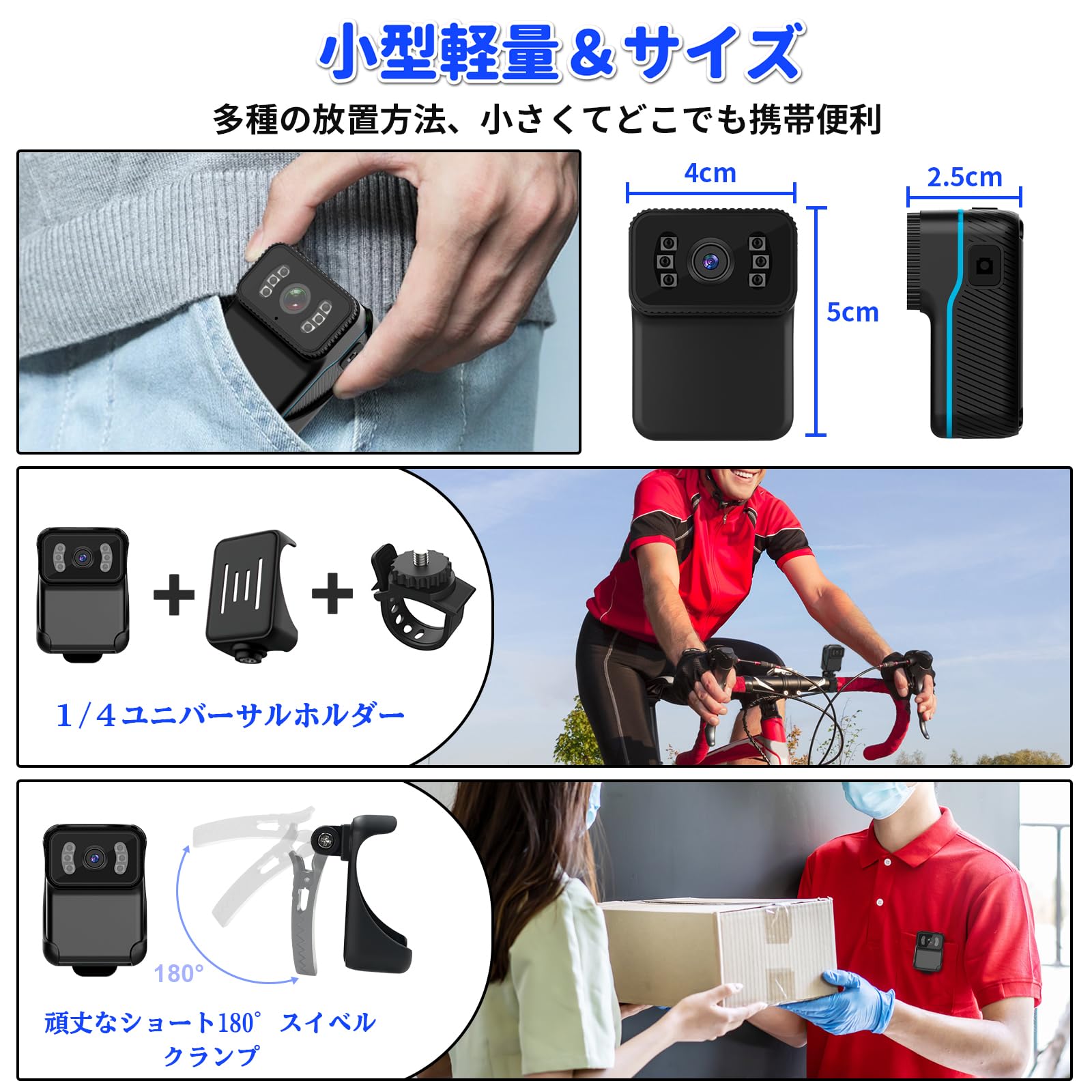 * 【暗視機能&夜間録画】6つの不可視赤外線ライトを装備したこのアクションカメラは、夜間でも鮮明な映像をキャプチャすることができて、安心して撮影が可能です。操作簡単、録画中に「録画ボタン」を長く押すと、暗視機能が起動します。ご注意:SDカードを挿入しない場合は使用できせん。※照射範囲は約4~5m程となります。