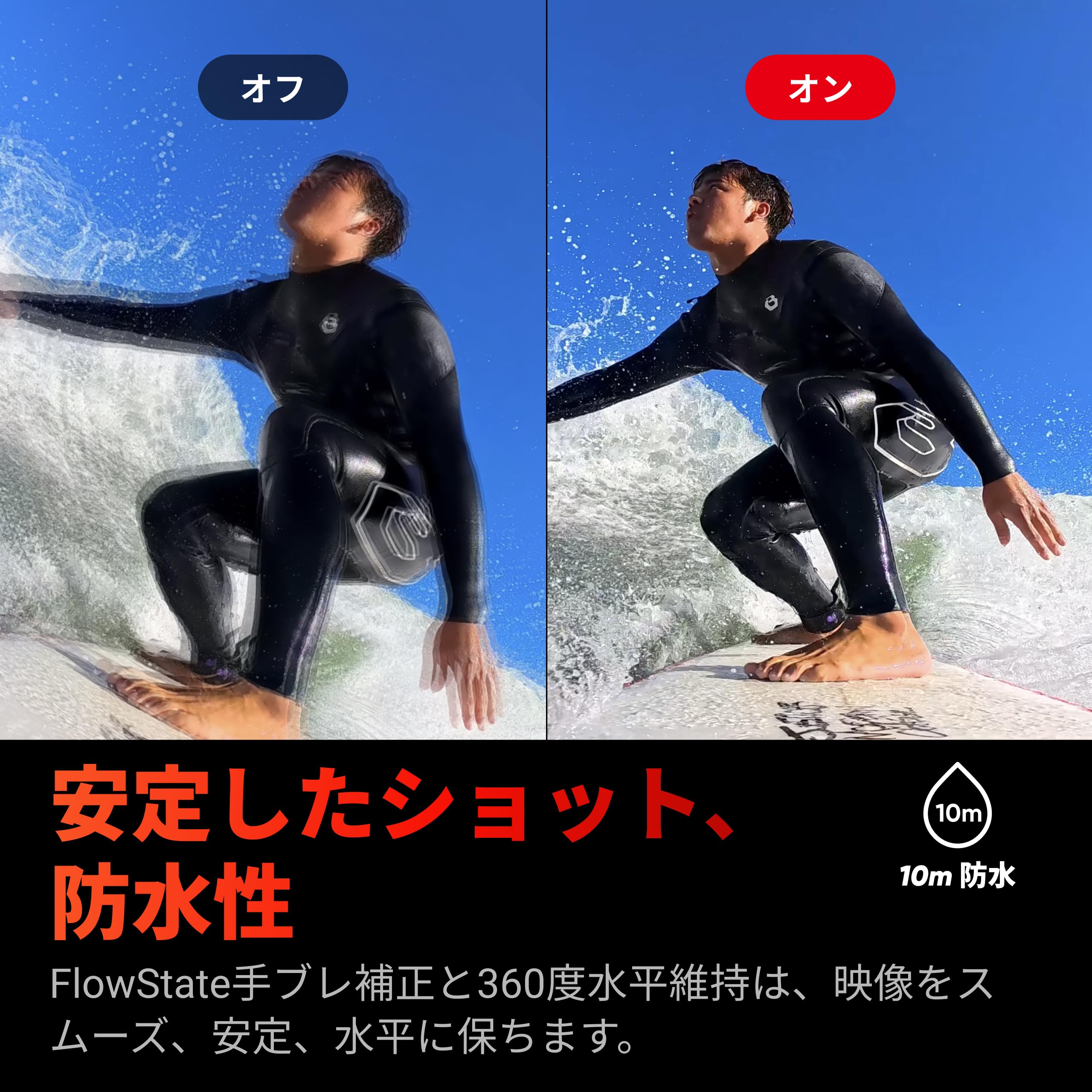 * 2.4インチフリップ式タッチスクリーン:巨大なフリップ式タッチスクリーンで操作性が向上。 どんなアングルからでも簡単にプレビューできます。 冒険仕様: 最先端のFlowState手ブレ補正により、激しい衝撃や揺れでも映像を安定。 Ace Proは10m防水で、-20°Cの環境下でも撮影でき、ウィンタースポーツ撮影にも対応。