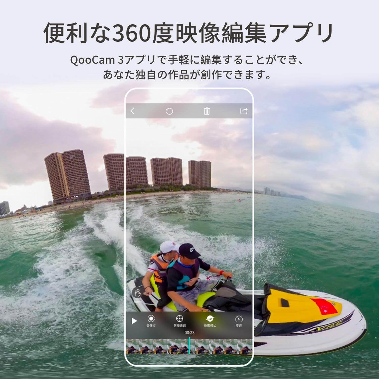 * 【多様な撮影モードとAI編集機能】11K間隔撮影モードや他の多彩な撮影モードを搭載し、QooCam 3アプリを使用して素材の即時編集が行え、多様なAIテンプレートを活用して作品を迅速にSNSに共有できます。美しい思い出が即座に鮮明に表現されます。