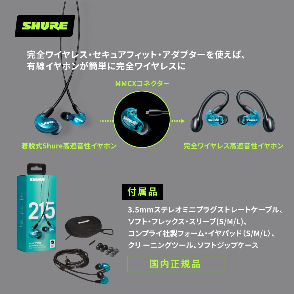 【VGP 殿堂入り金賞】SHURE シュア イヤホン 有線 SE215 SPE-A ブルー 高遮音性 ノイズキャンセリング ゲーム ゲーミング スペシャルエディション カナル型 ワイヤレス変換可(別売) MMCX リケーブル プロ仕様 低音強化 配信 音楽 オーディオリスニング レコーディング 録音 楽器 在宅勤務 リモートワーク ケーブル長116 cm 【国内正規品/メーカー保証2年】
